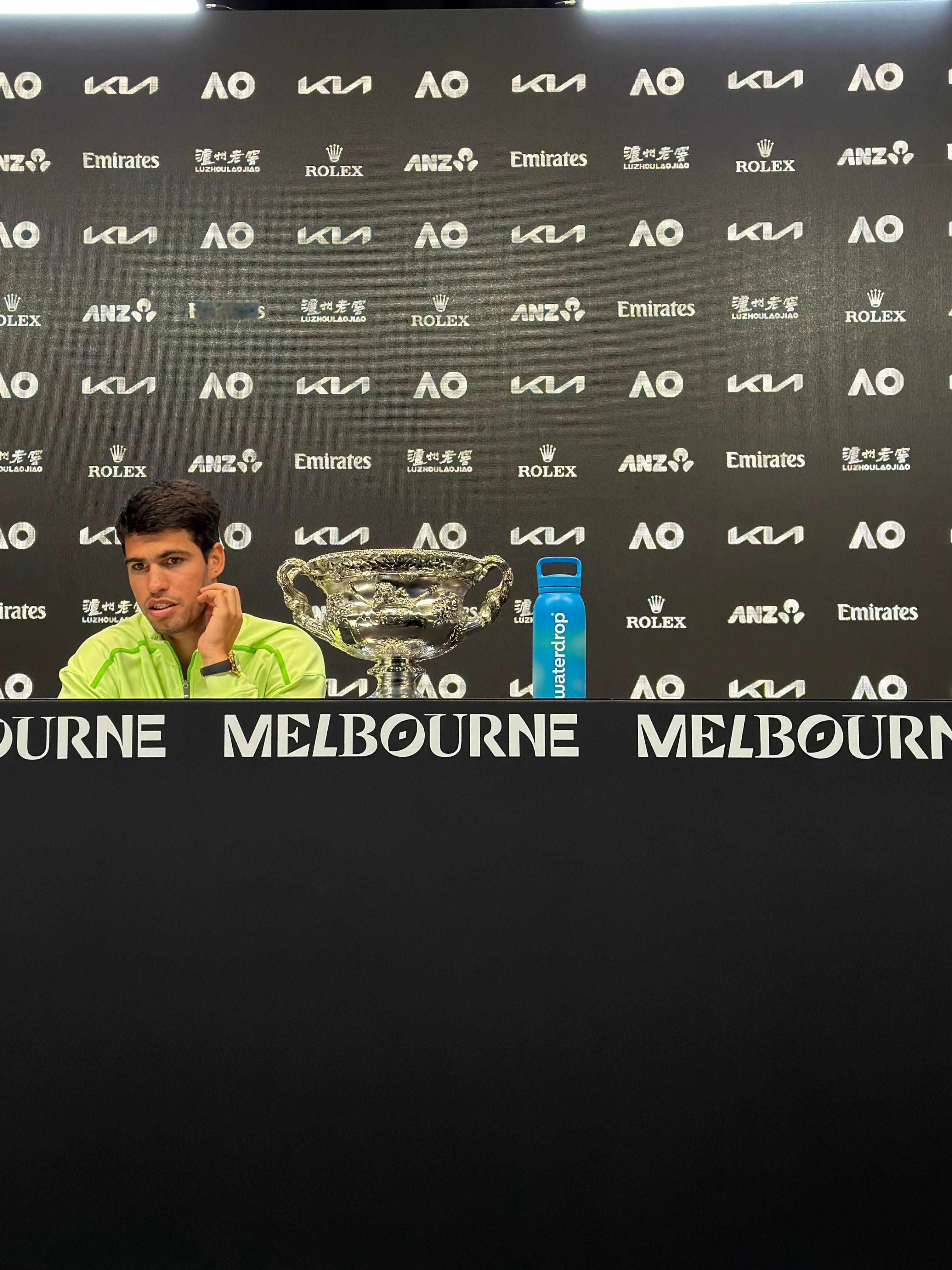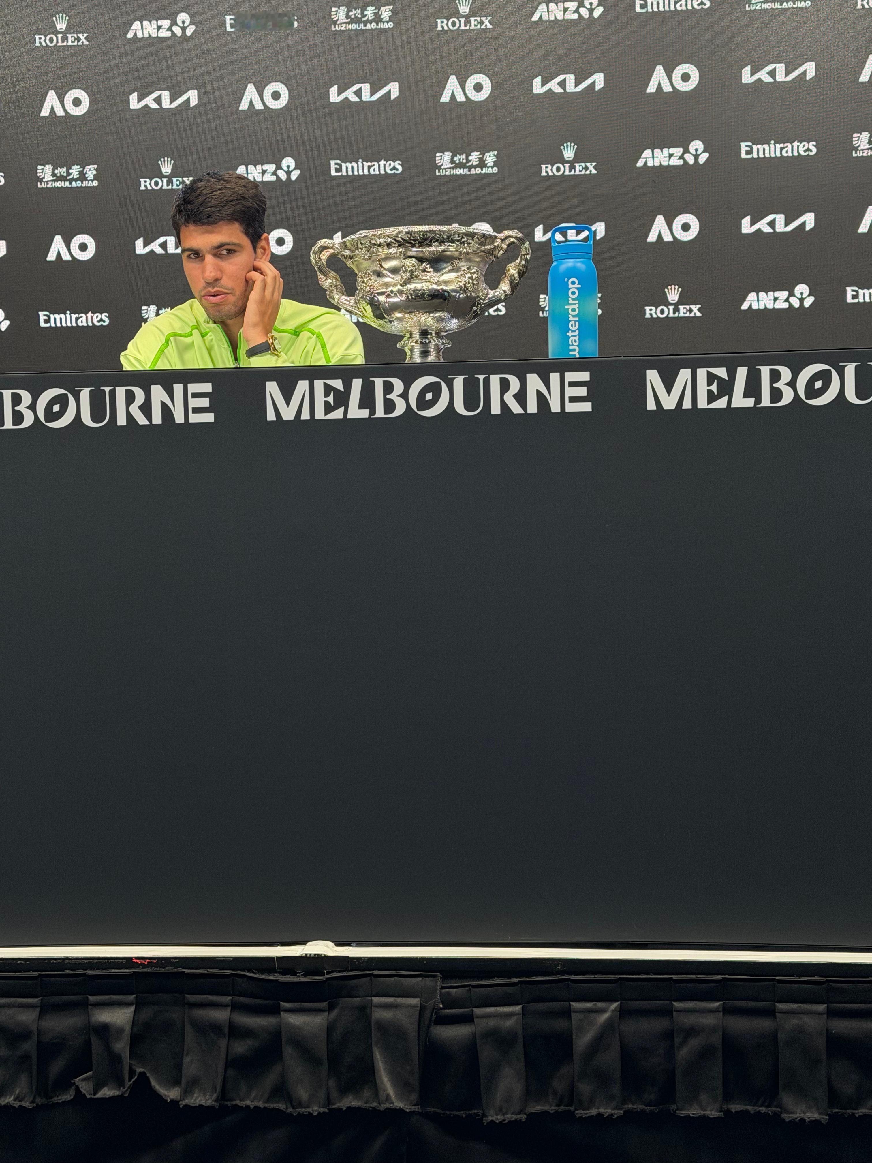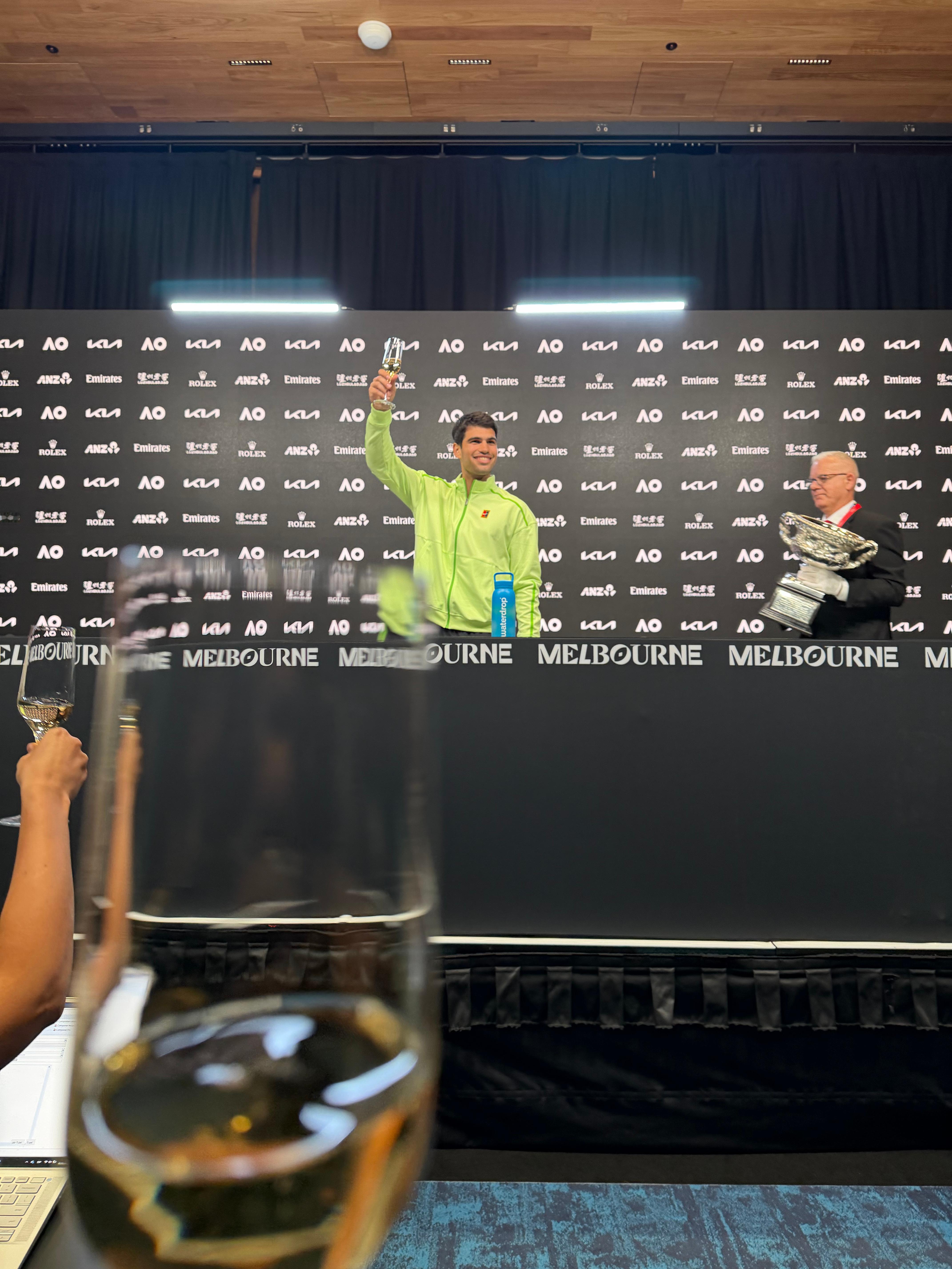 阿卡的庆功酒喝上了!他说It’s really nice!澳网2026澳网阿尔卡拉斯夺冠