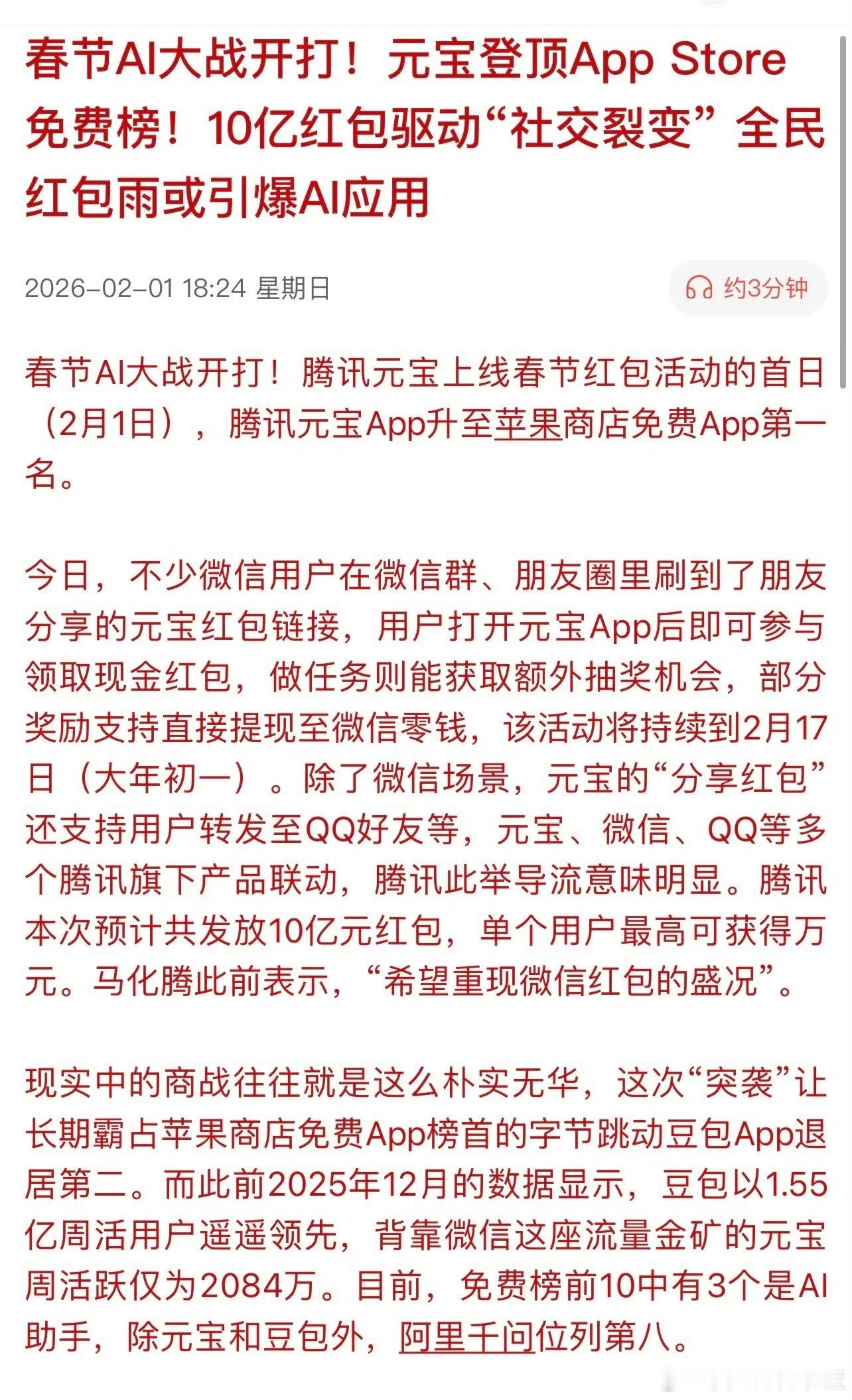 春节AI大战开打。谁满仓AI应用?