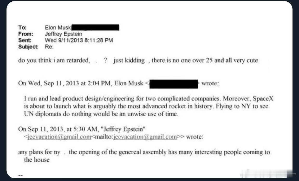 杰弗里。爱泼斯坦对埃隆。马斯克说:"你觉得我是弱智吗?开玩笑啦,这里没有超过25岁的人,而且个个都很可爱。"马斯克这个花花公子怎么会放弃登岛