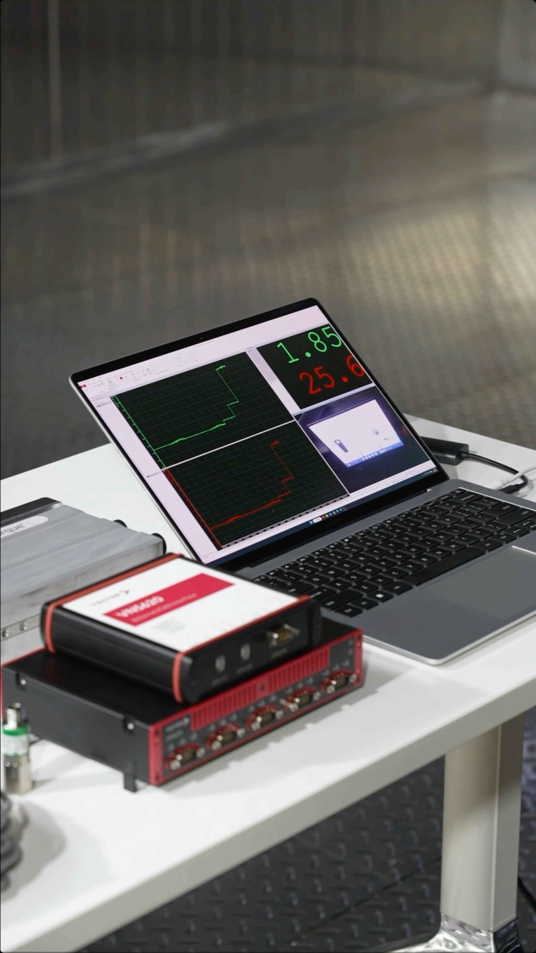 图 3 展示的是车内的中控屏耗电,可检测中控屏亮度变化带来的的能耗曲线。图 4 展示了车内的全自动化测试台架,可自动模拟真实用户在车内的各项操作,从而使用对应传感器检测。