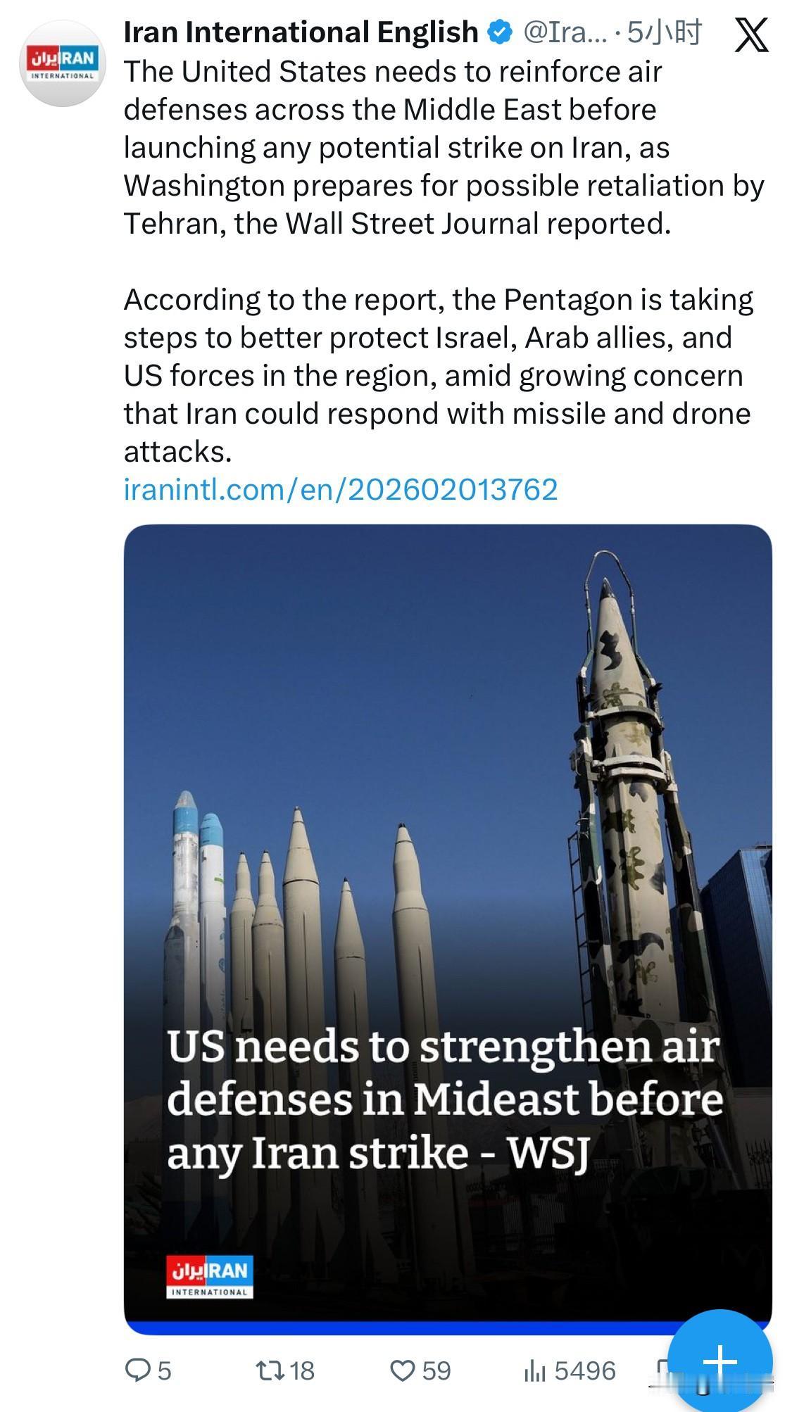 据《华尔街日报》报道,美国在对伊朗发动任何潜在打击之前,需要加强整个中东地区的防空力量,因为华盛顿正在为德黑兰可能的报复做准备。 报告称,由于越来越担心伊朗可能会以导弹和无人机袭击作为回应,五角大楼正在采取措施更好地保护以色列、阿拉伯盟友和该地区的美国军队。