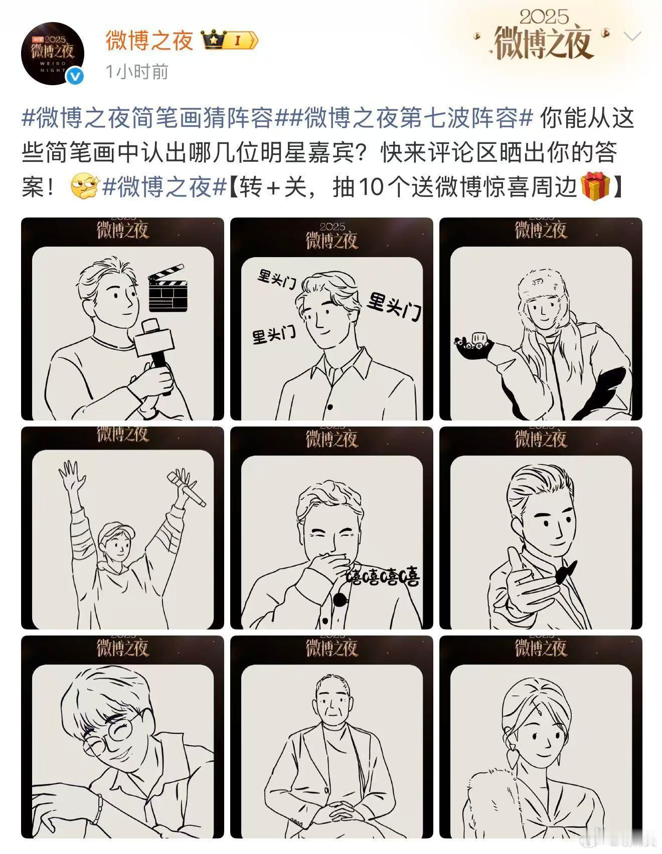 第七波阵容解密微博之夜第七波阵容张艺谋、李宇春、杨幂、肖战、王一博、杨紫、李冰冰、舒淇、李少红、申奥、黄晓明、姚晨、邓超、惠英红、袁和平、吴京、黄渤、沈腾 新娱