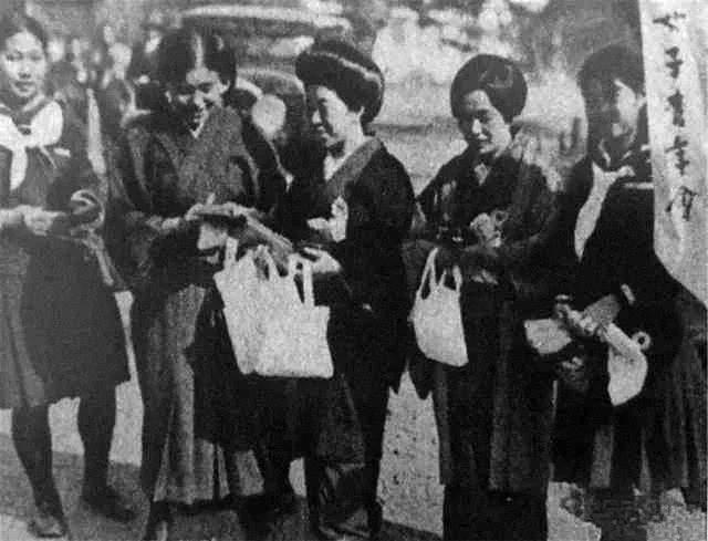这张照片中,日本女性们聚集在京都西本愿寺前,手持募捐袋与宣传旗帜,响应着“每人每天少吃一顿饭”的极端口号,为侵华日军募集军费。 这种看似“奉献”的行为,本质是日本政府在九一八事变后,通过军国主义宣传煽动民间战争狂热的结果。她们省下的口粮、募集的资金,最终都转化为日军侵略中国的武器与给养,成为屠杀中国同胞的帮凶。