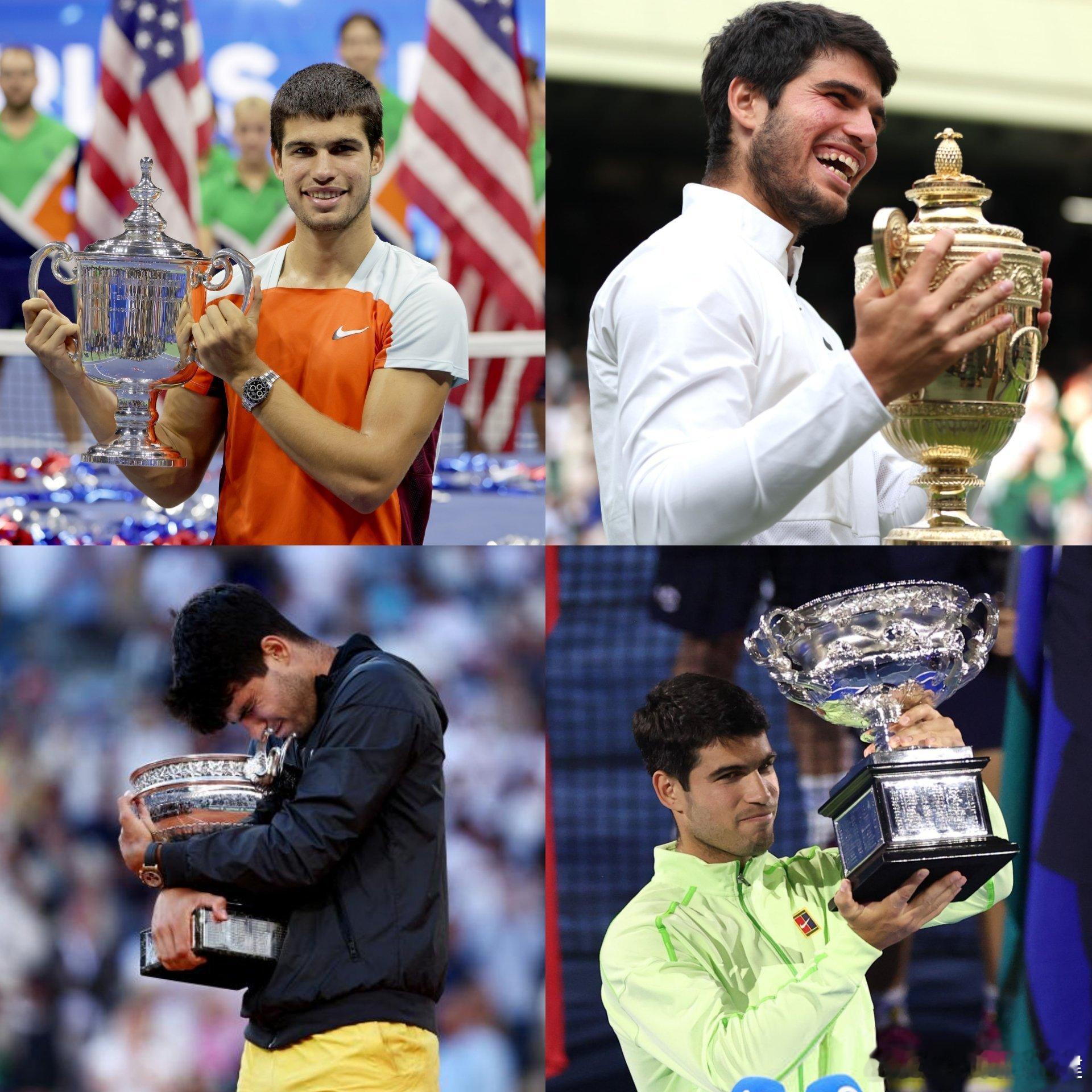 公开年代全满贯球员名单(下一个会是?):拉沃尔考特比利简金埃芙特(第33个大满贯完成)纳芙纳蒂洛娃(第32个)格拉芙(第18个)阿加西(第36个)小威(第18个)费德勒(第40个)纳达尔(第26个)莎拉波娃(第36个)德约科维奇(第46个)阿尔卡拉斯(第20个)阿尔卡拉斯夺冠阿尔卡拉斯首夺澳网冠军阿尔卡拉斯实现全满贯