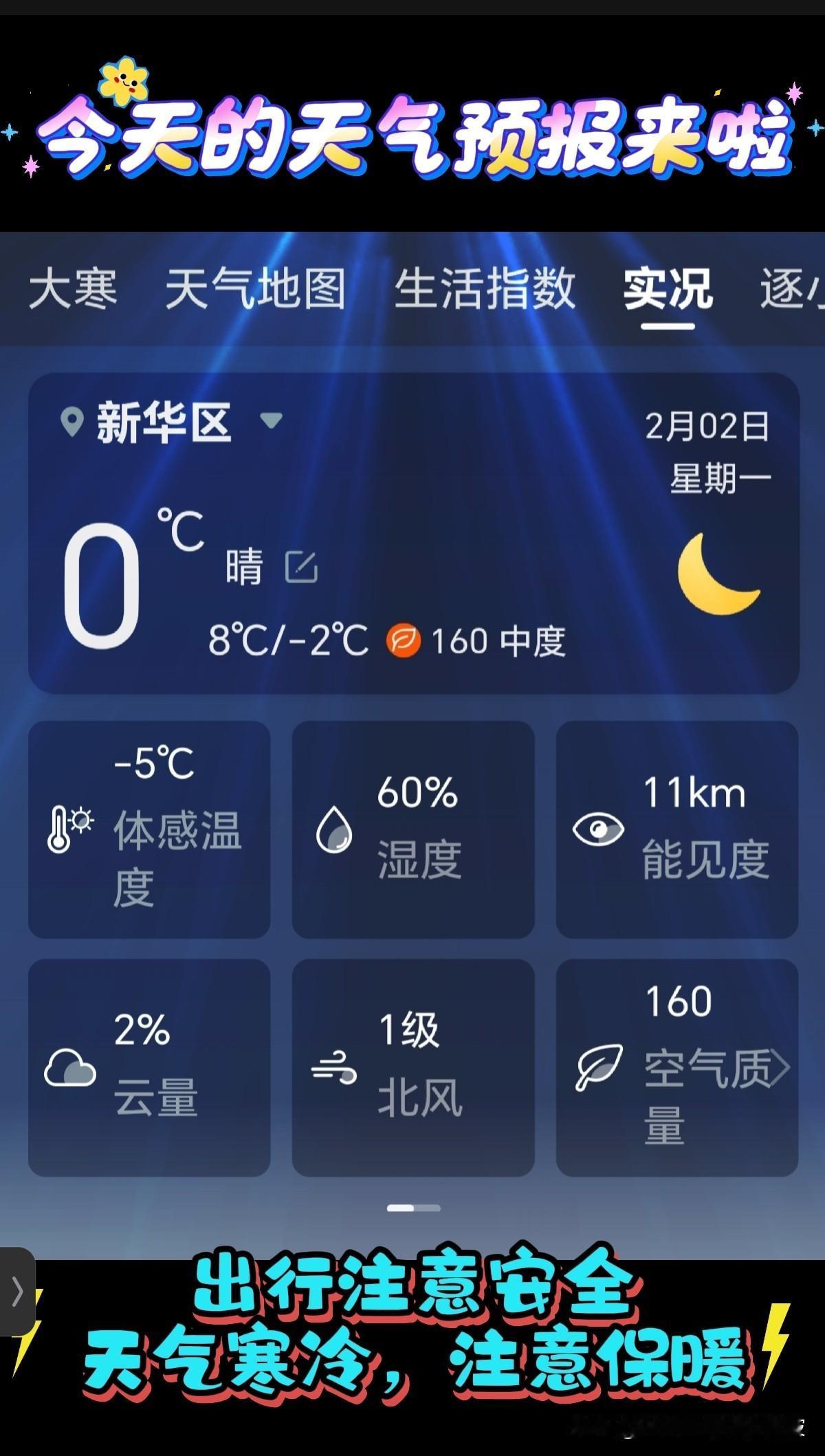 🌻早安问候🌻 𝙂𝙤𝙤𝙙 𝙈𝙤𝙧𝙣𝙞𝙣𝙜 今天是: 2026年2月2日 农历:乙巳年腊月十五 星期一 签到成功,获得3个创业卷,已连续签到2天! 今日天气: 晴,本周以多云为主,阳光较少。 空气质量: 轻度污染。 儿童、老年人及心脏病、呼吸系统疾病患者应尽量减少体力消耗大的户外活动。 气温:8℃~-2℃ 早晚温差10度,人体感觉寒冷,注意添衣保暖防冻。 湿度:55% 风向:东南风转西南风 风力:3级 紫外线:1级,最弱紫外线辐射天气,无需特别防护。若长期在户外,建议涂擦SPF在8-12之间的防晒护肤品。 日出:7:26 日落:17:46 ⛵️人生路上,步履匆匆,放下让自己不开心的事情,忘记让自己伤心的人,走自己的路,做自己的主,看自己的景。开心是一天,不开心也是一天,何不开开心心过好每一天。不辜负每一缕阳光,不辜负每一朵鲜花和每一根绿草。 …ʚ🌻ɞ早安☕️