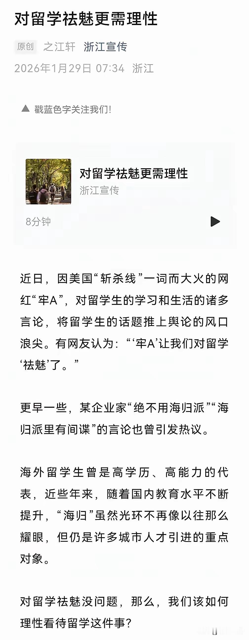 浙江宣传一纸发文,直接把牢A推上风口。一边驳斥“抹黑女留学生”,一边却把婚检提醒