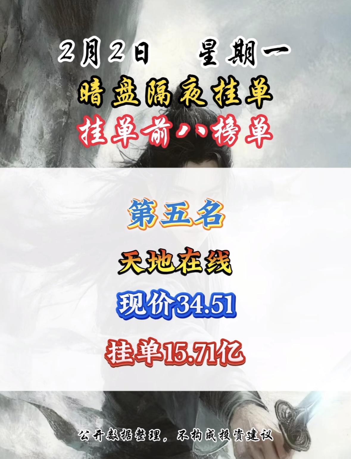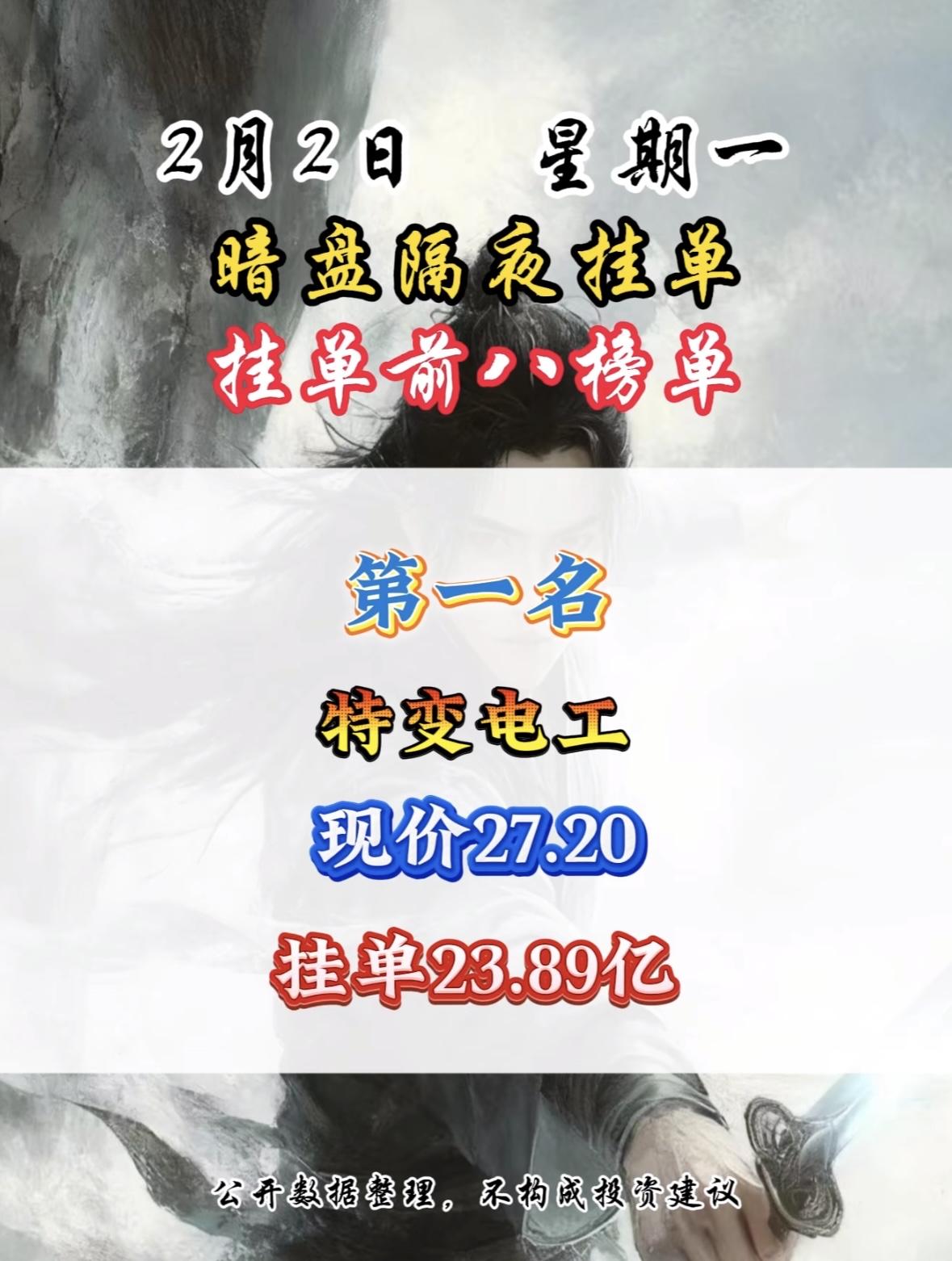 2月2日,暗盘隔夜挂单湖南黄金现价37.00,挂单10.94亿,暗盘隔夜挂单前八榜单! "暗盘挂单强势领跑,特变电工现价引关注。数据整理分享,市场动态速递。"