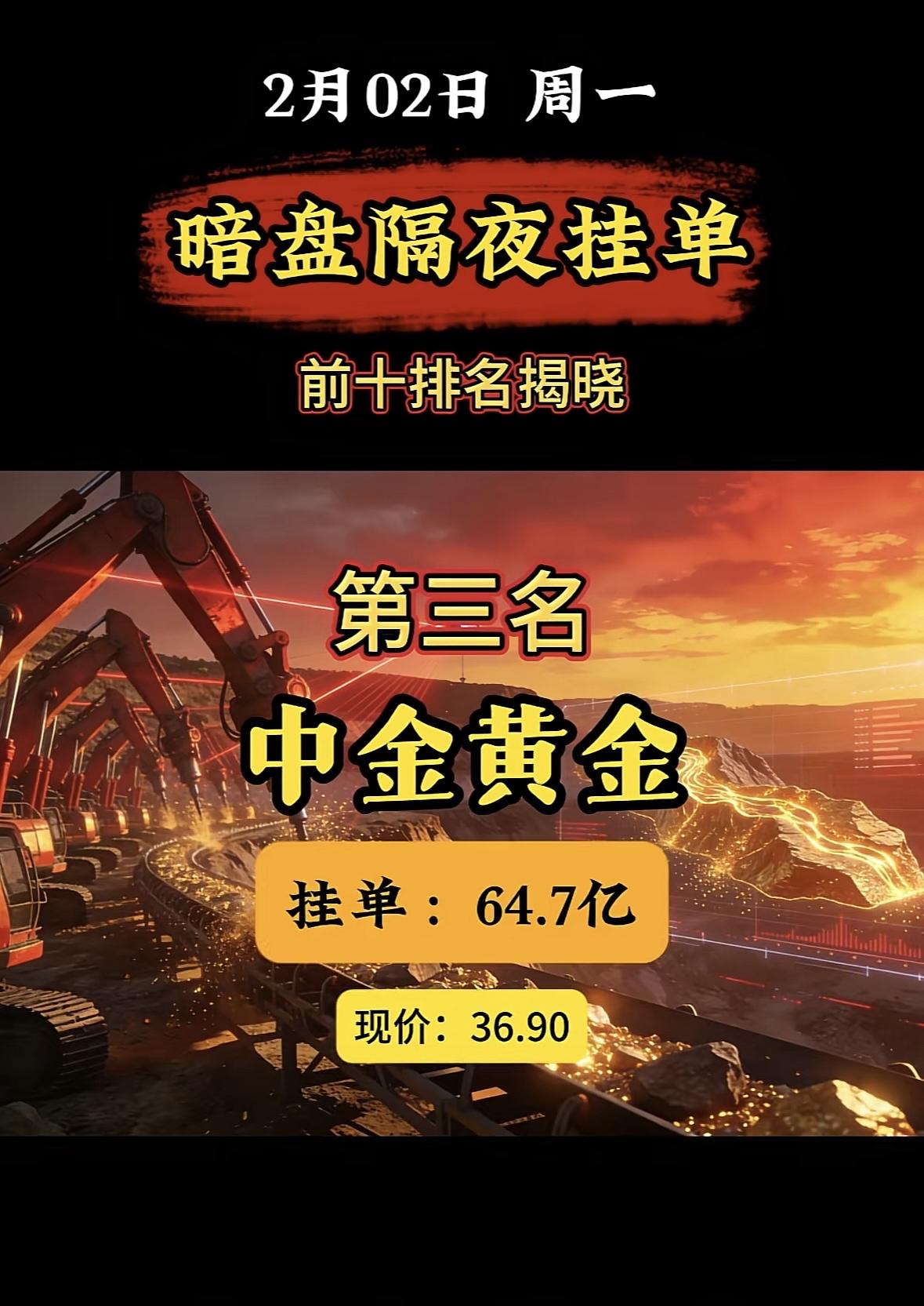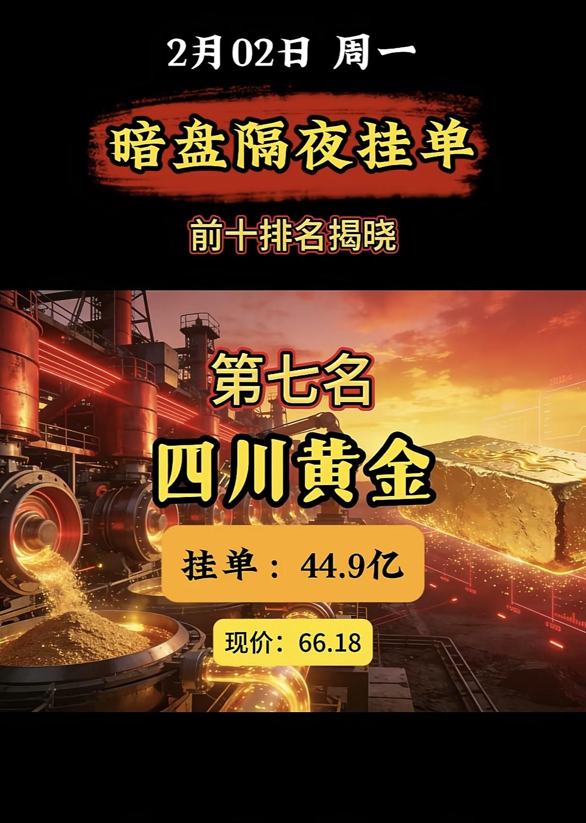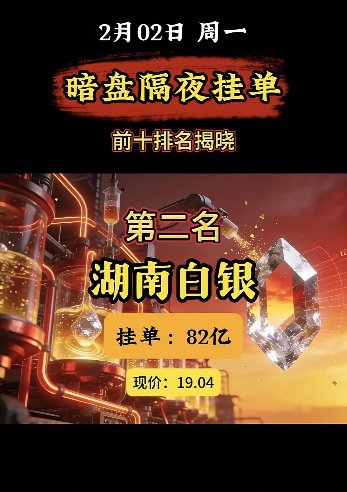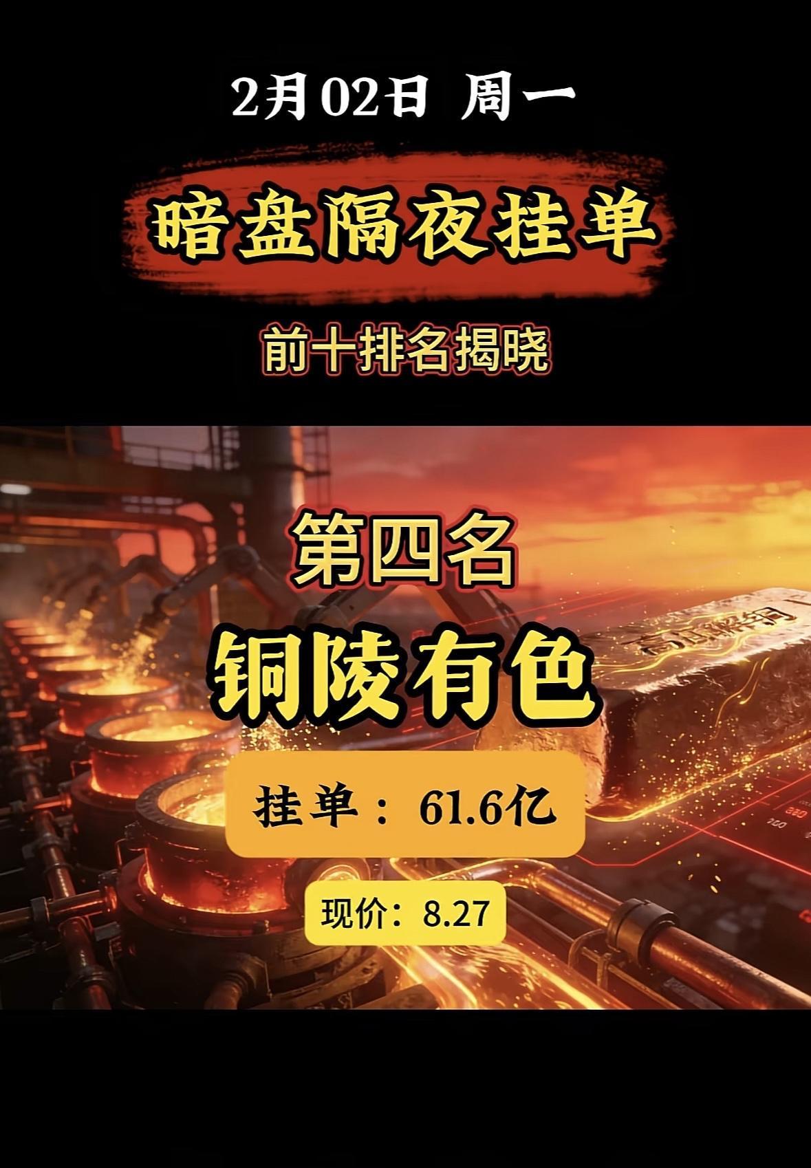 2月2日暗盘隔夜挂单榜首:中国铝业,33.5亿现价14.13 "白银有色登顶暗盘榜首,挂单近百亿现价亮眼" "白银有色登顶暗盘榜首,近百亿挂单抢筹,现价稳居高位。"