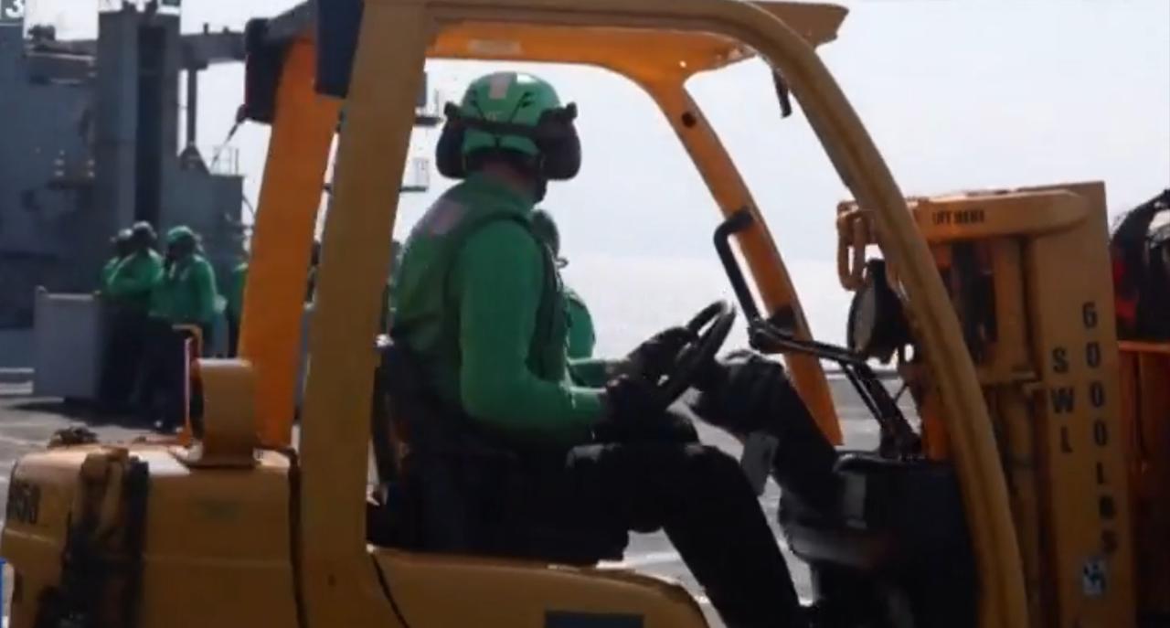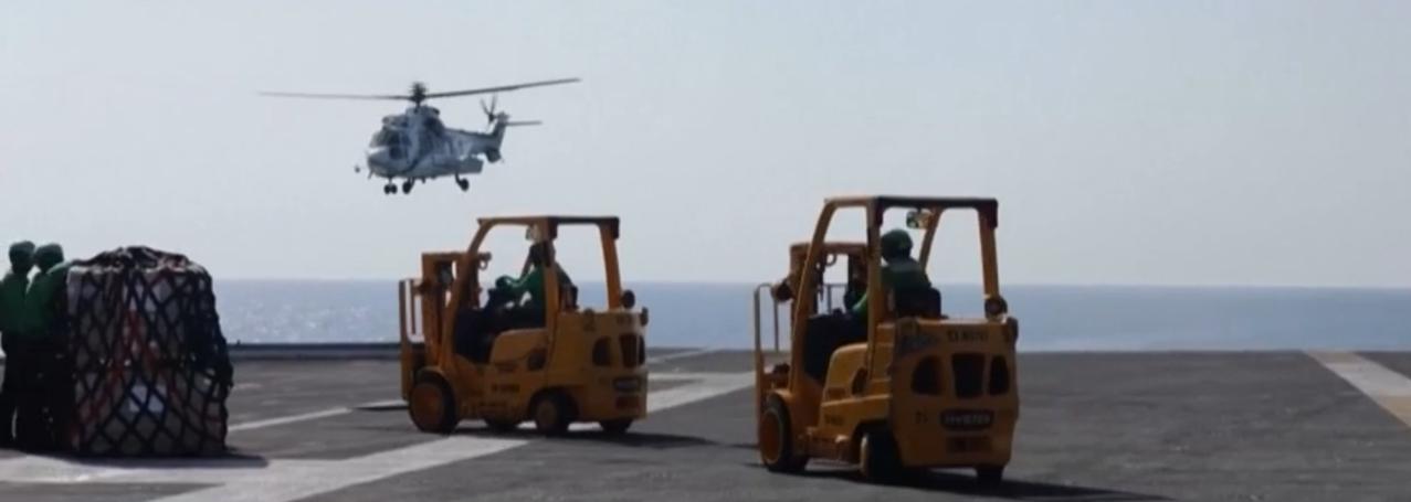 镜头切换间,从伊朗德黑兰车水马龙的街头,到航母甲板上繁忙的物资转运,再到也门萨那的城市天际线,展现出不同场景下的生活与动态。德黑兰的街道车流穿梭,民众步履匆匆;航母上直升机悬停、叉车穿梭,尽显军事行动的高效;也门的城市则在风沙中静默,旗帜在风中飘扬,勾勒出复杂的地区图景。