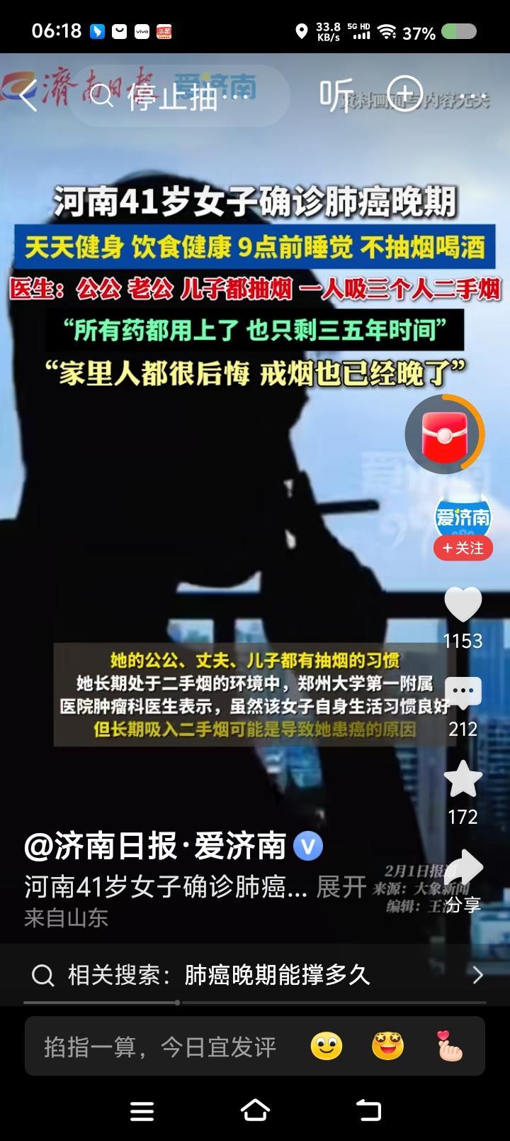 这三人是不是“凶手”?—— 据报道,一女子生活很自律,患肺癌。公公、丈夫、儿子都吸烟。长期接触二手烟,于健康有害。 点评: 世界不就是二手烟市场么?只是距离问题。个人方面应禁烟禁酒,政府层面不好实行。