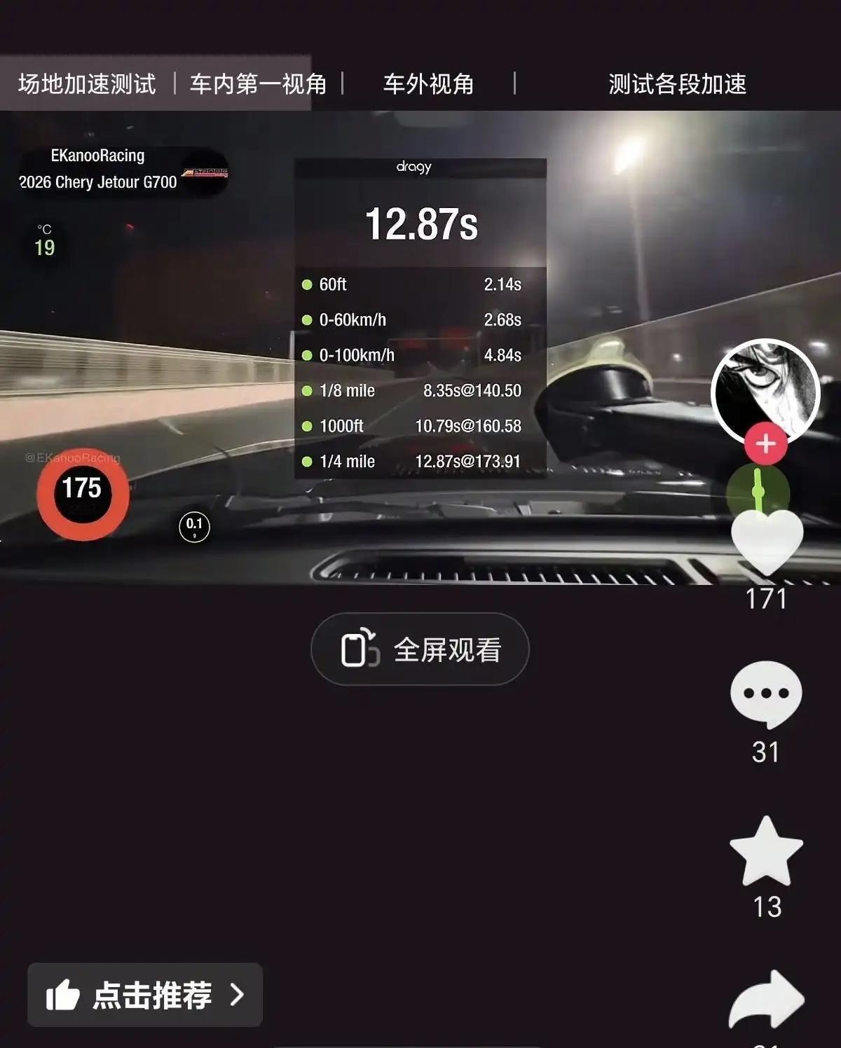 3吨的车,零百加速不到5秒,G700真可以了,起步都有抬头的感觉了!