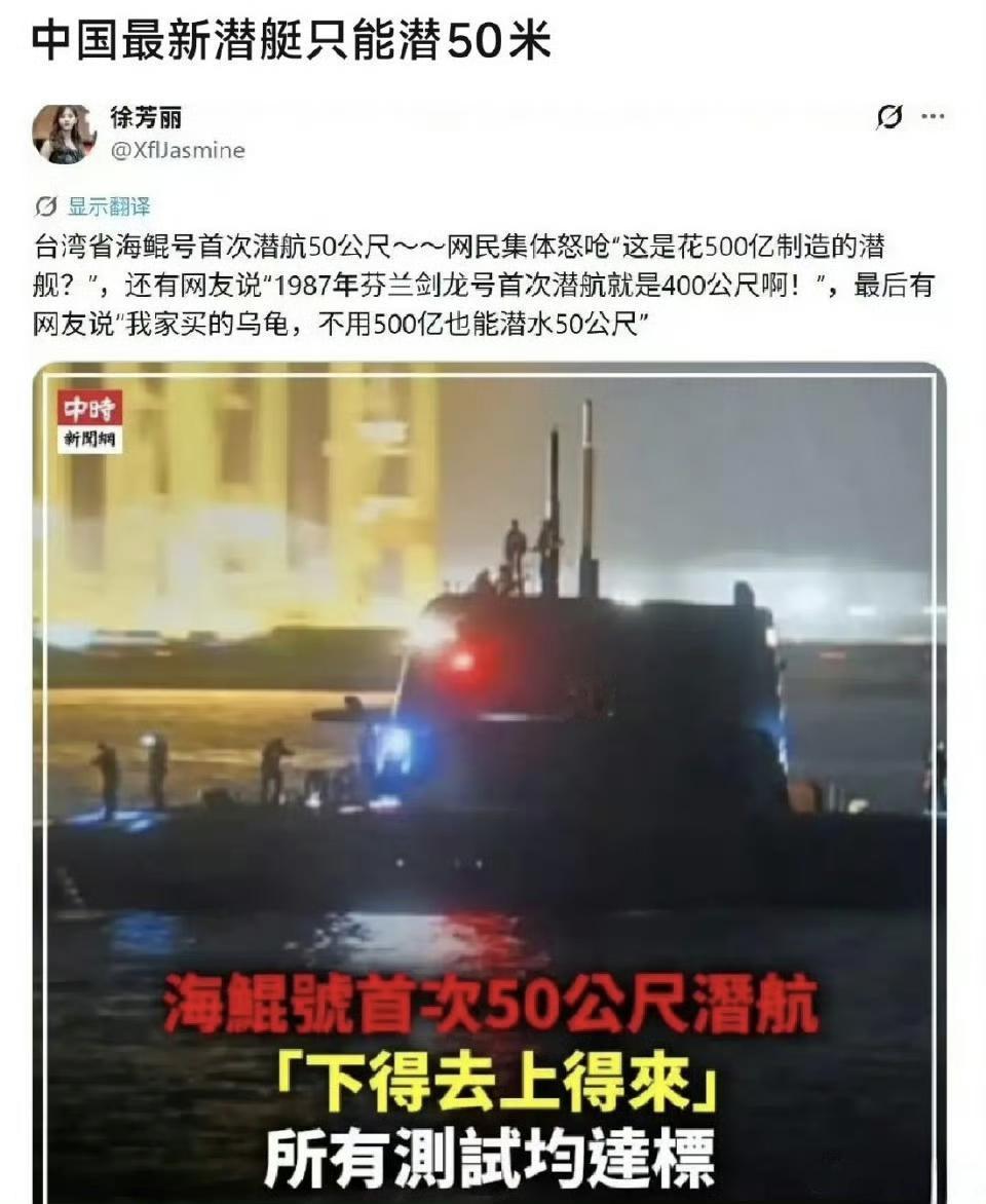 糟糕,东大最新潜艇只能潜50米!哦,原来是台湾省制造的。这个他们可以技术性解决,一艘可以潜50米,两艘就能潜100米……深不可测!