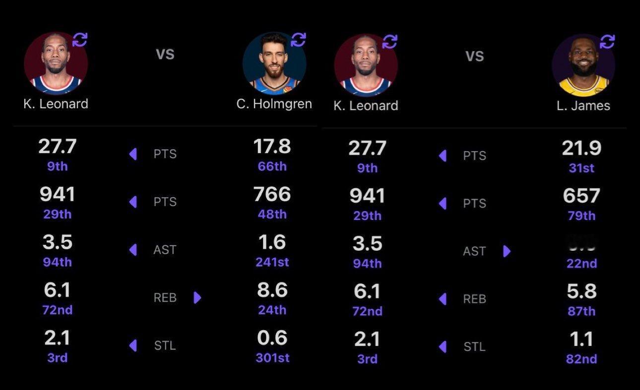 ▲伦纳德场均27.7分,成为历史上未入选全明星的球员中,场均得分最高的一位