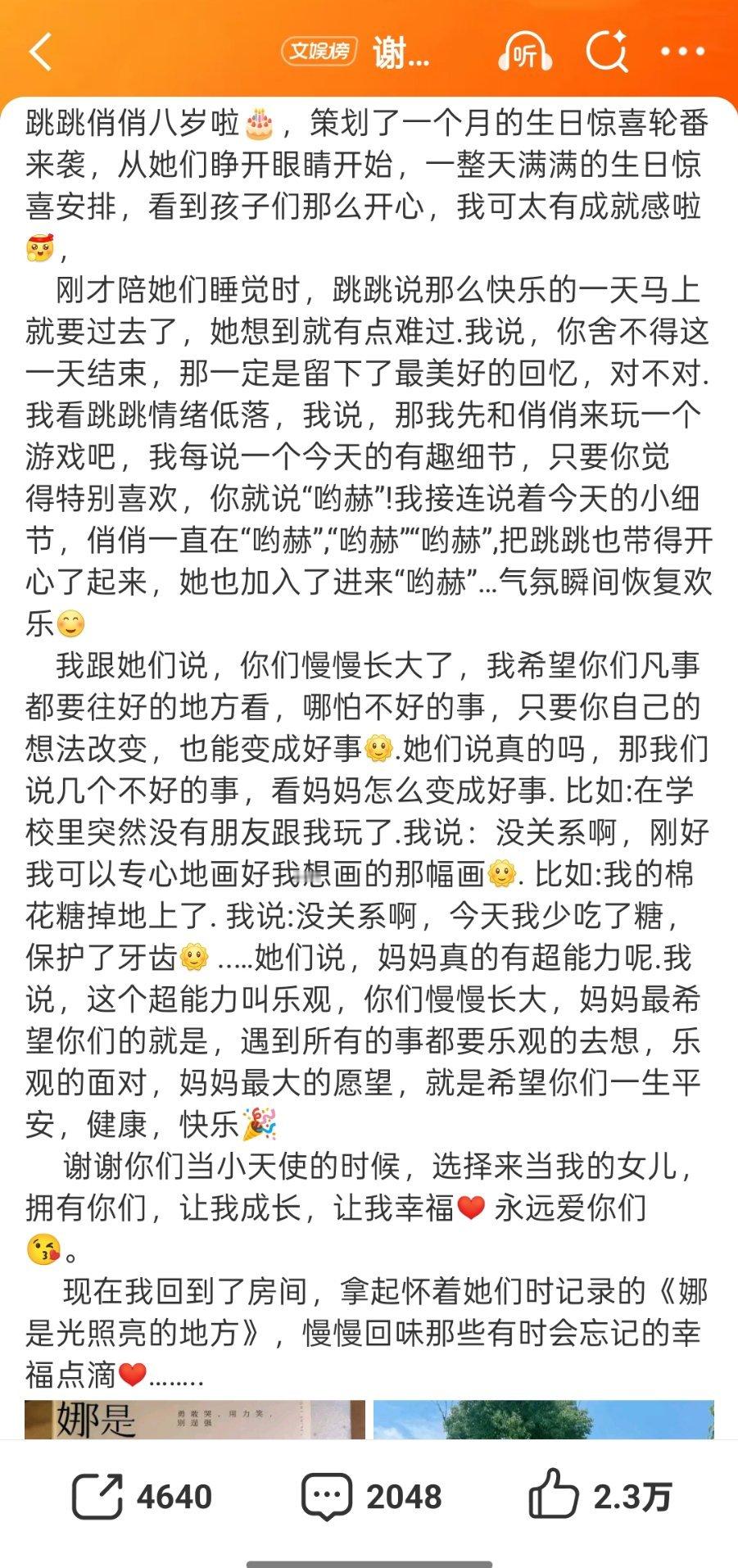 谢娜庆祝跳跳俏俏八岁生日转眼间都八岁了跳跳俏俏!杰哥和娜姐把小朋友保护的非常非常棒,不用在别人的镜头下生活,杰哥和娜姐感情就好似热恋,太甜蜜了