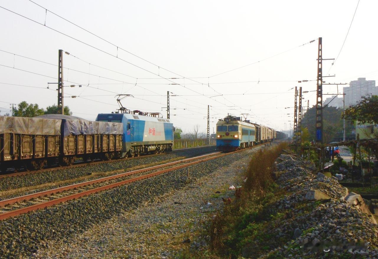 十年前在西永拍到兴珞铁路上两列货运列车会车,图中的地方是以前的西永车站,当时刚废弃没几个月,西永车站是一座小站,以前重庆到达县的慢车要停靠办理客运业务,后来那趟慢车停运了,再后来随着重庆铁路规划布局的调整,这里的铁路变成兴隆场编组站去成渝、川黔方向的货车外绕线,并且增建为复线,西永站没有存在的必要了,2015年9月废弃,这里从此成为兴珞铁路团结村站与白市驿站之间的一处区间。