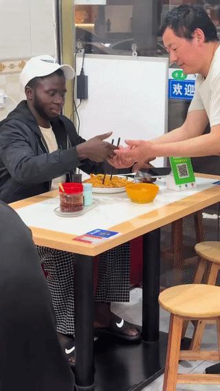 黑人男子吃炒面竟然不会用筷子? 热心的饭店老板看到后,亲自走过来,手把手教他应该如何用筷子吃面条🍜 社会新闻