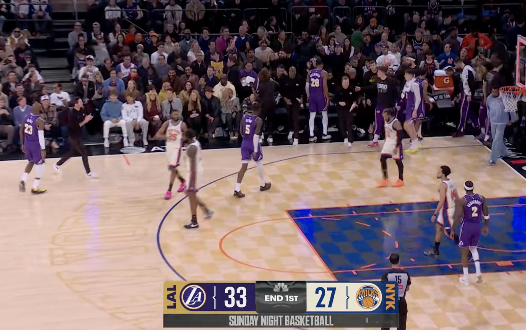 第一节结束,湖人33-27尼克斯,如何评价首节表现?湖人vs尼克斯