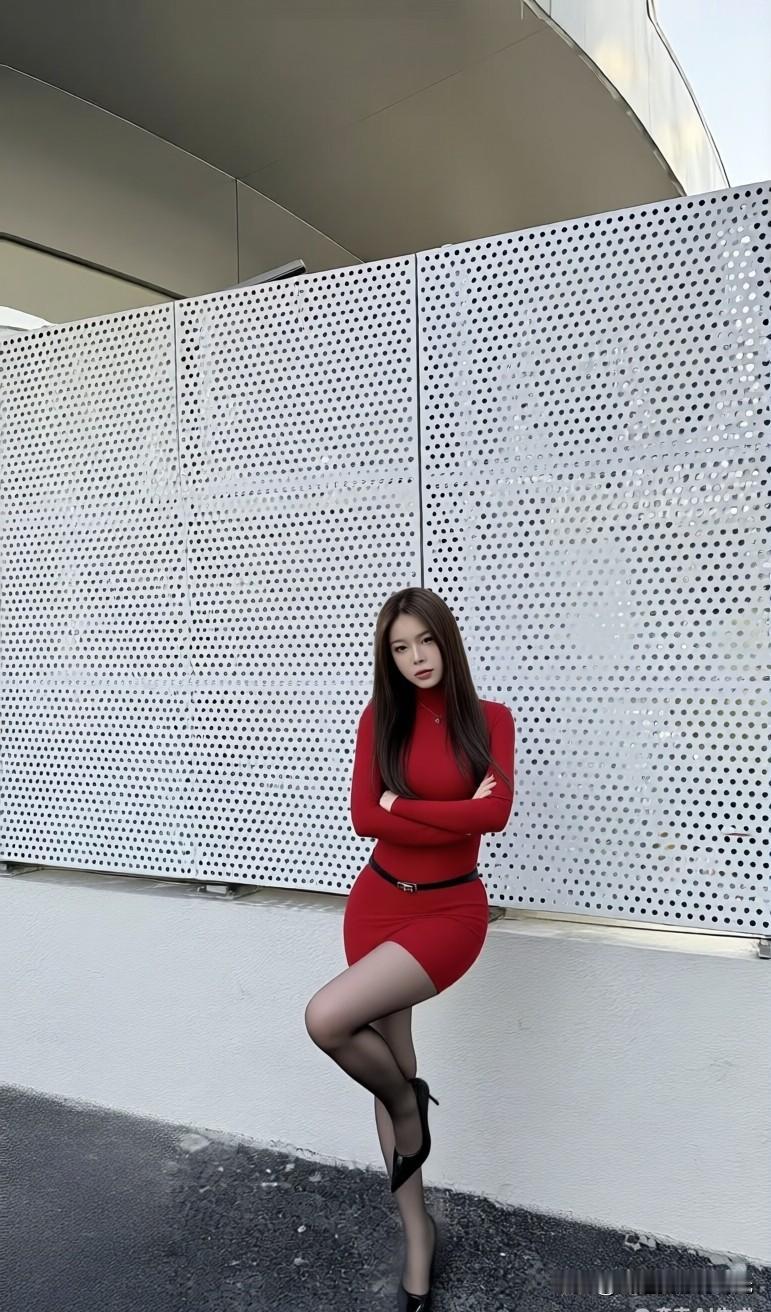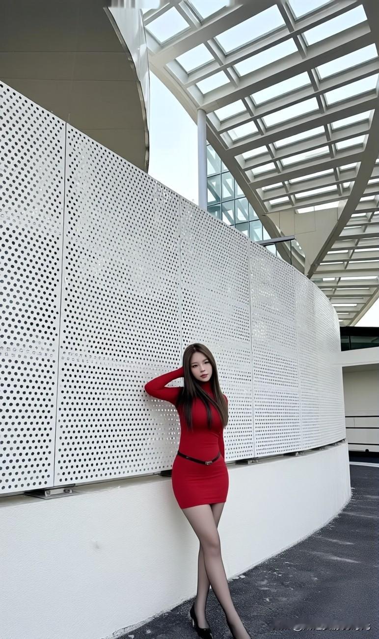 都市红裙少女,倚靠现代建筑,时尚与优雅并存。尖头的高跟鞋适合什么场合穿呢?