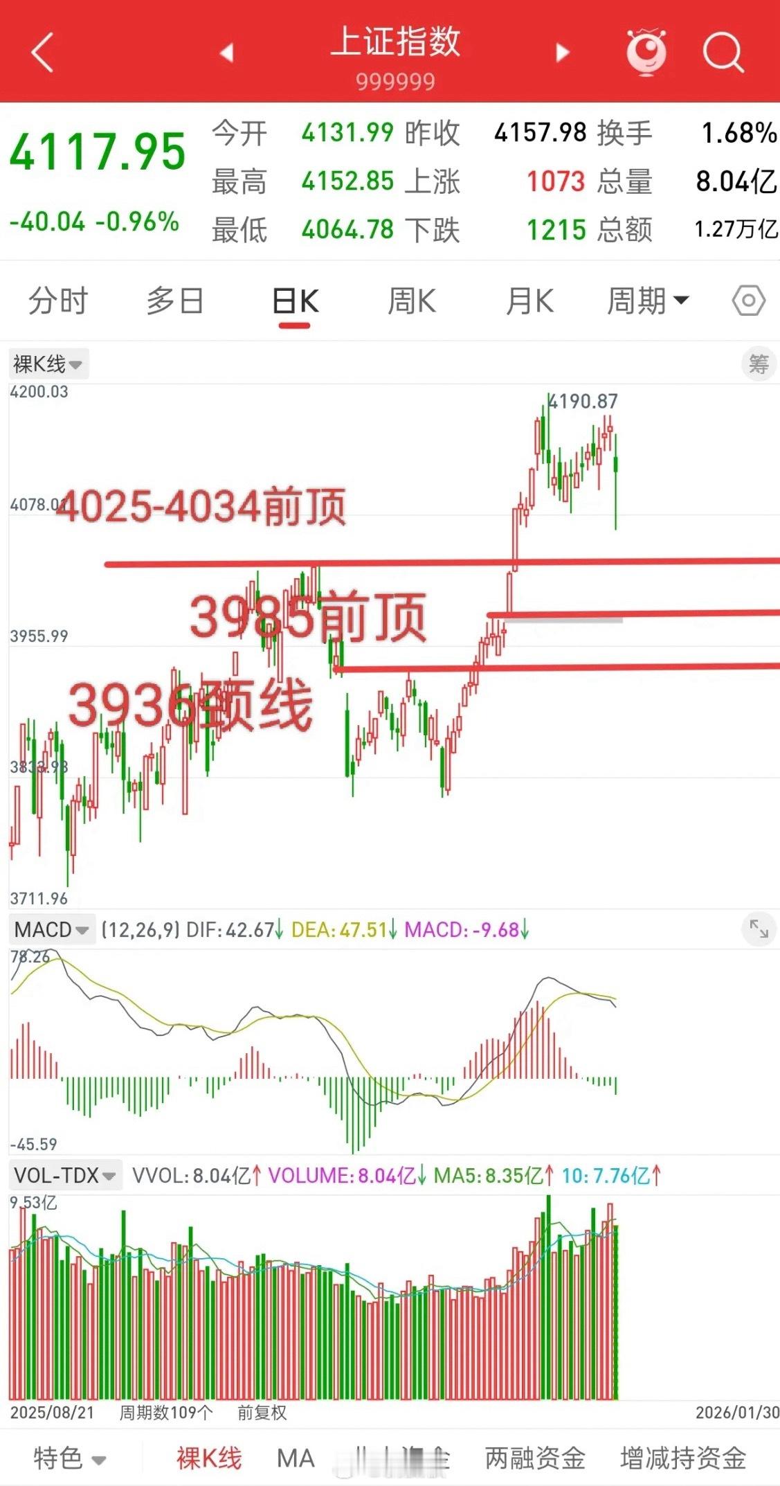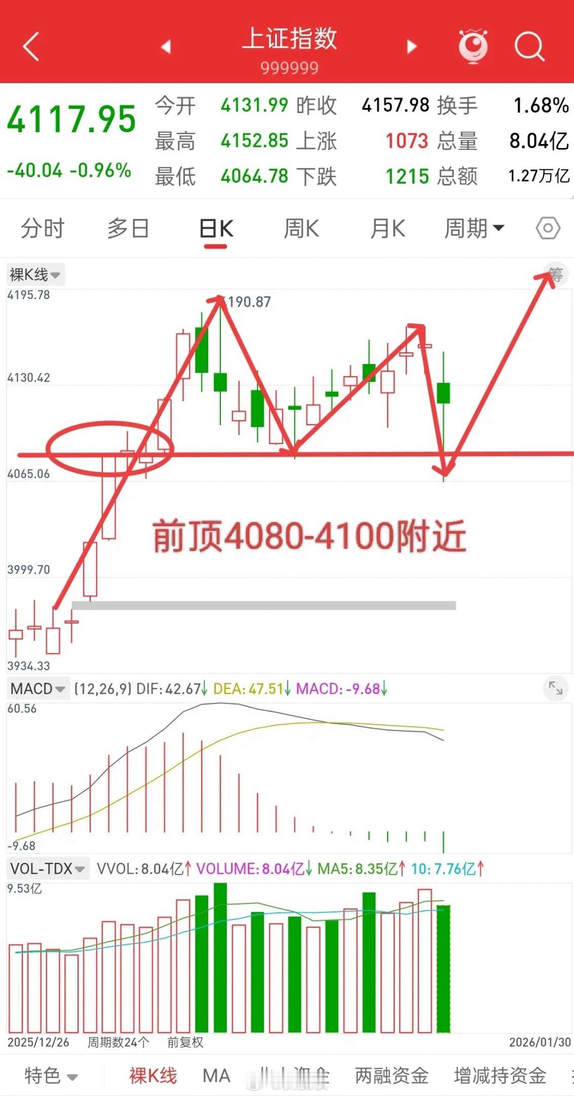 所以,本周行情很明确,今天先看4080收盘能不能站稳,稳了,是一种做法,不稳又是一种做法。