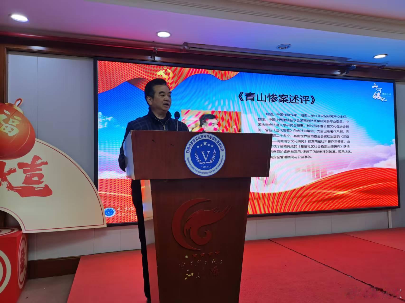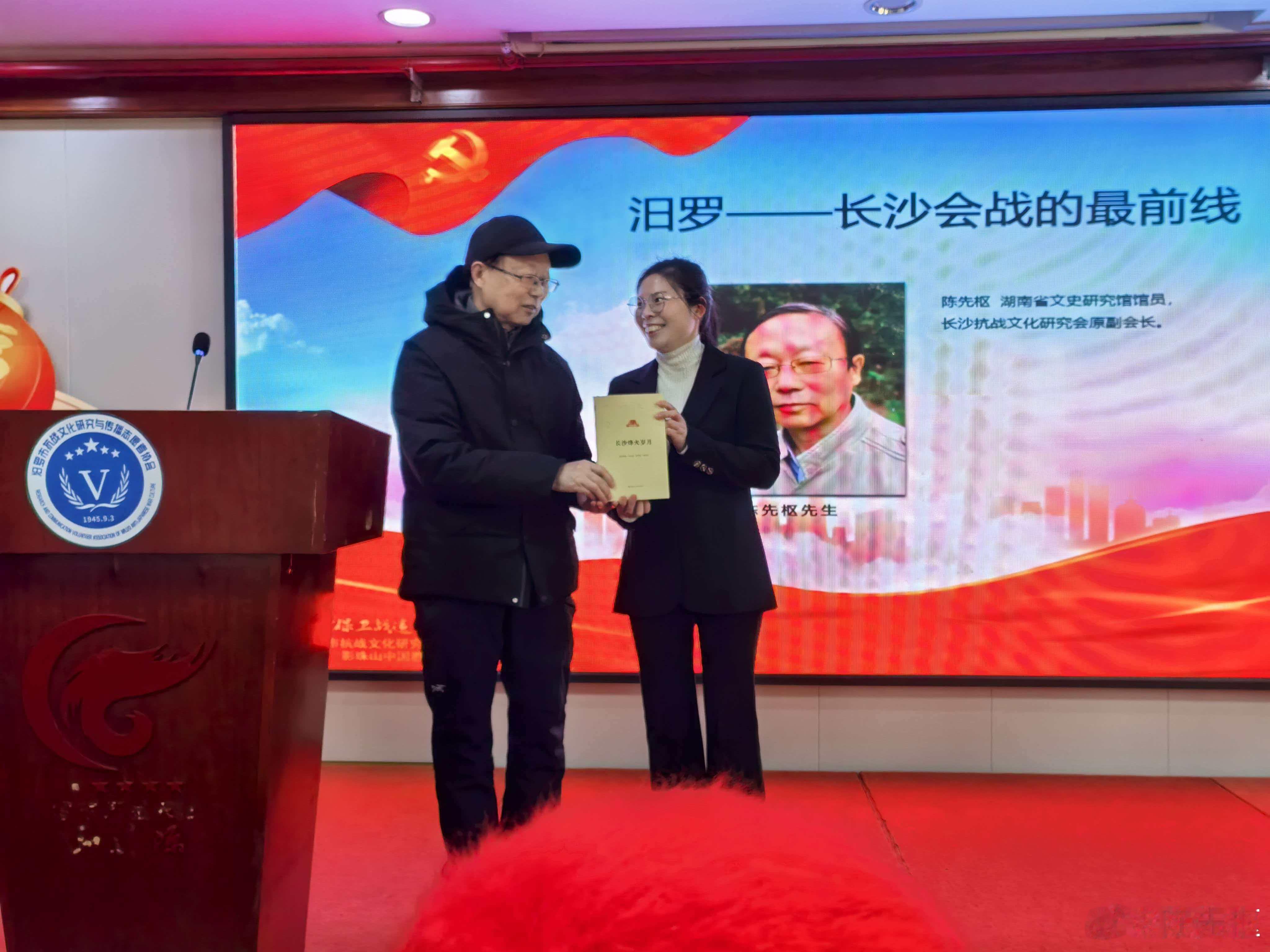 2026年2月1日参加汨罗市抗日文化志愿者协会年会暨党日活动,应邀做题为“汨罗 — 长沙会战的最前线”的发言,并捐赠《长沙烽火岁月》一书
