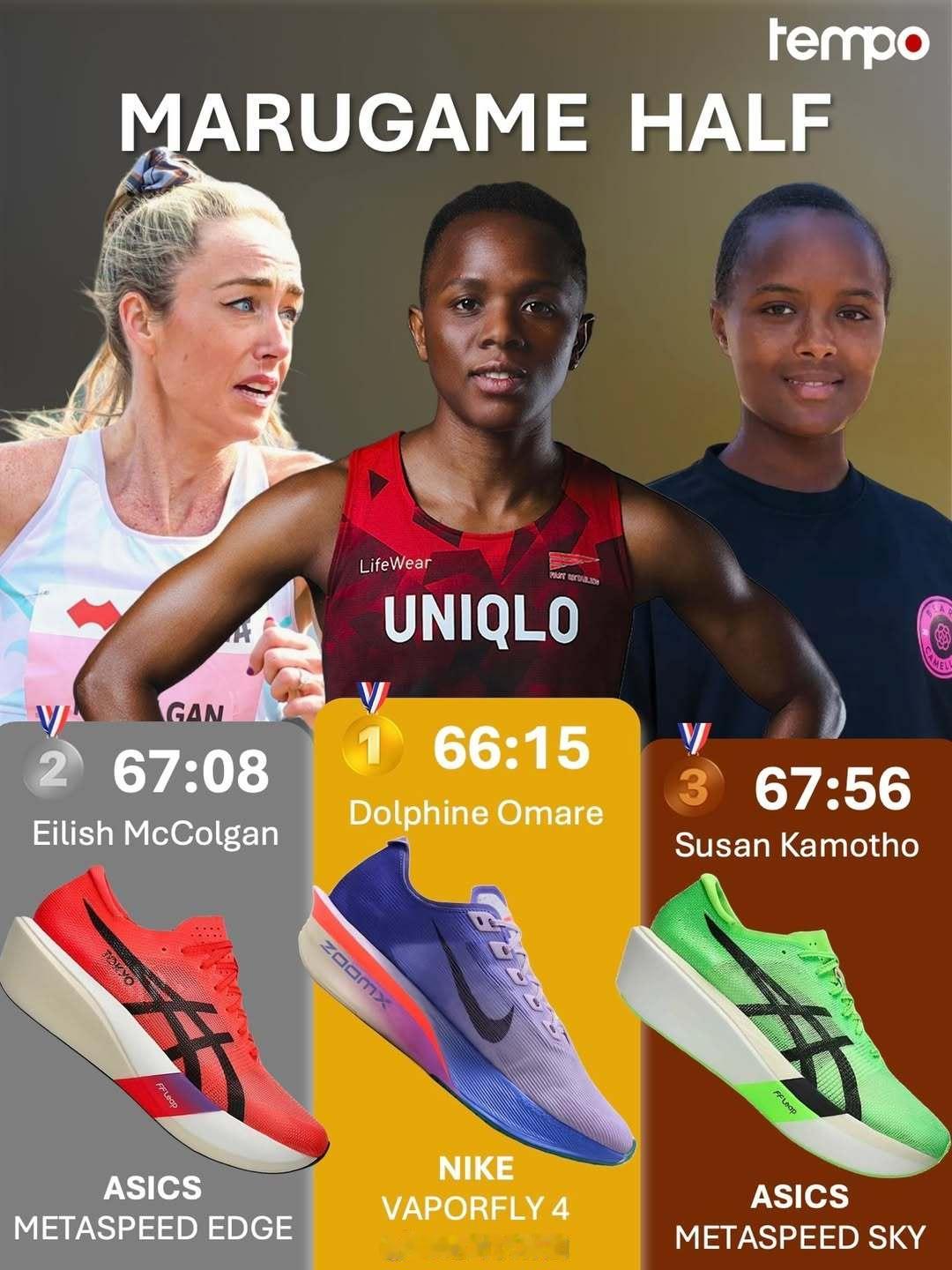 2026日本第78回香川丸龟国际半程马拉松男女前三名跑步用鞋。成绩单网页链接跑