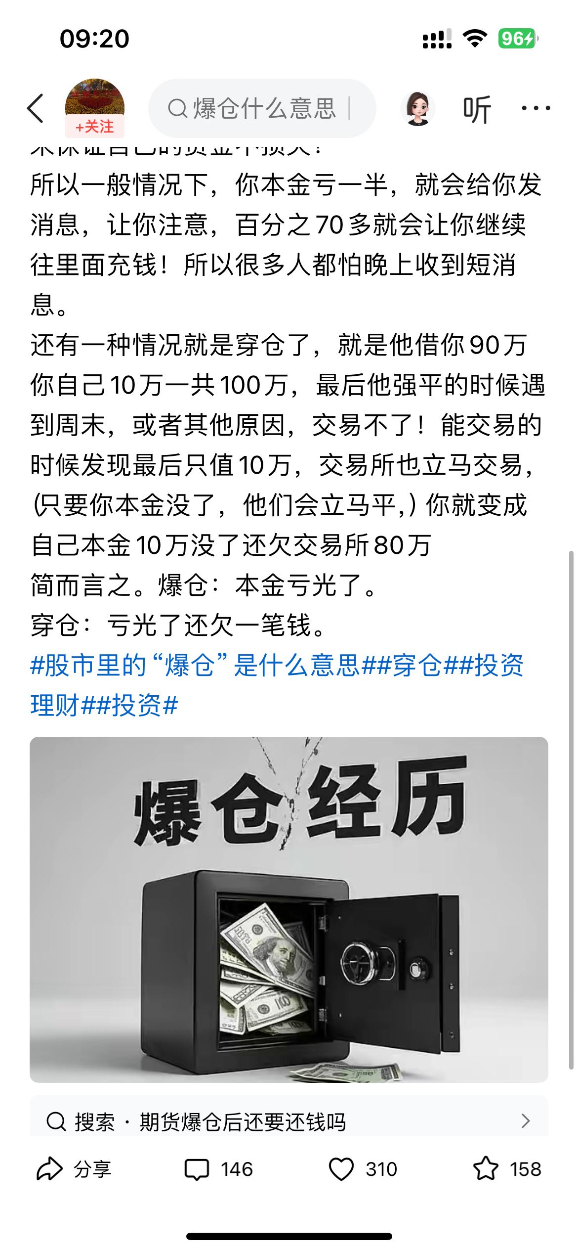 今天又学一个名词,“爆仓”、“穿仓”,没办法啊。 穷啊,连股票的术语到现在才明白!有句话怎么说,有闲钱的,股票可以玩,没有闲钱,亏钱了心疼半天的人,股票还是不要玩了! 毕竟那一天的随着大盘K线跌宕起伏,一句话“玩的就是个心跳”!那样得有个强大的心脏!否则还是别玩了。