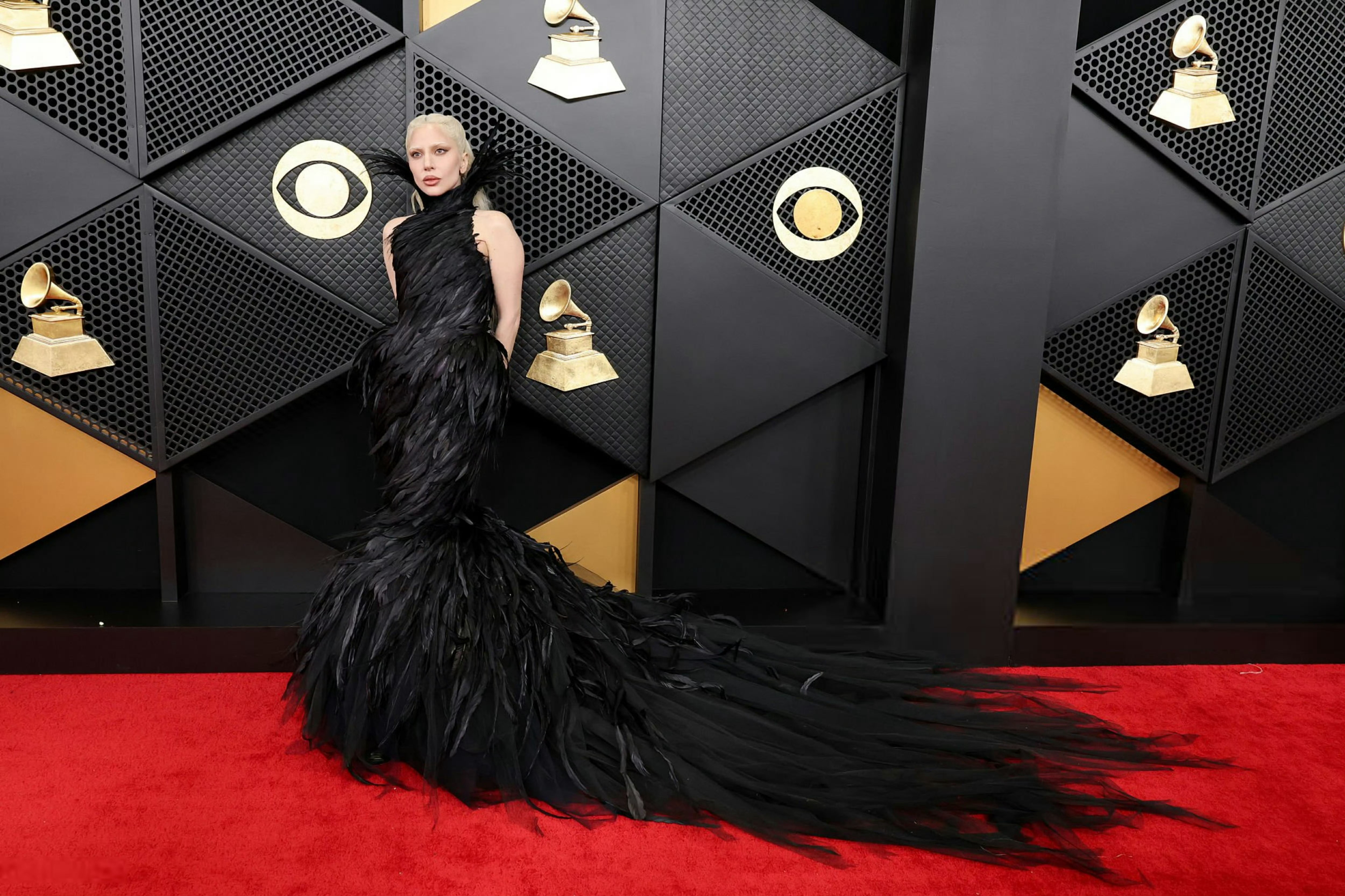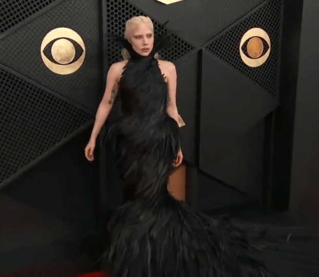 Lady Gaga 亮相 格莱美 红毯,一袭黑色羽毛裙,来自Matieres Fecales 特别定制,暗黑哥特的女王气场。🪶🖤 时尚灵感解读