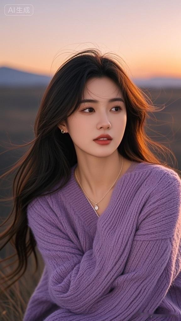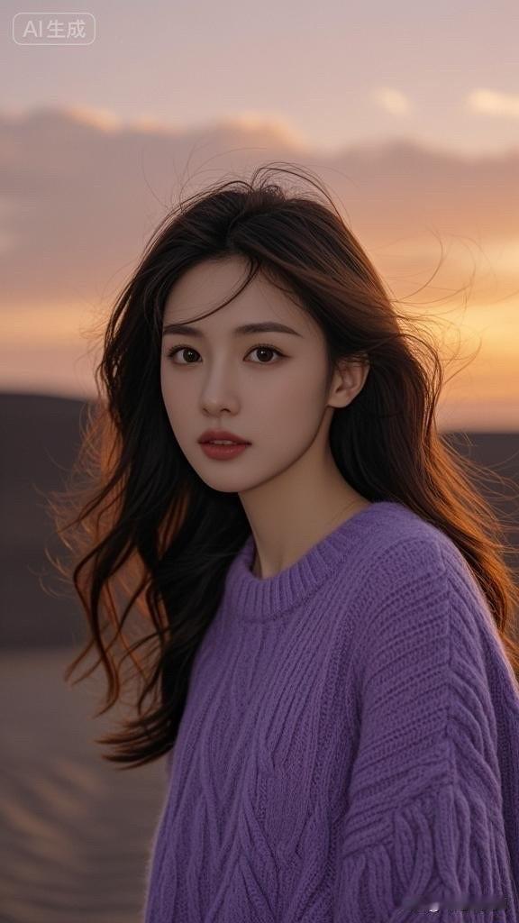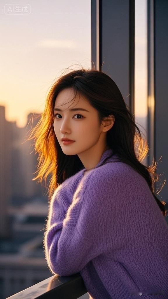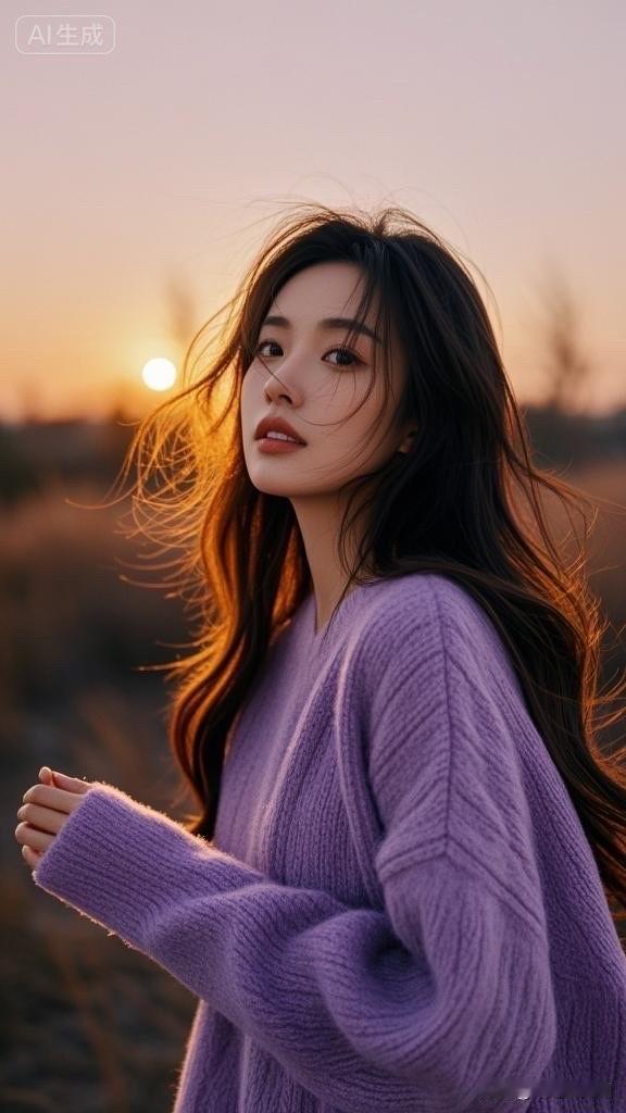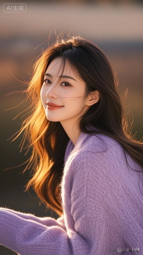 温柔晚霞下的少女,微笑如春风拂面