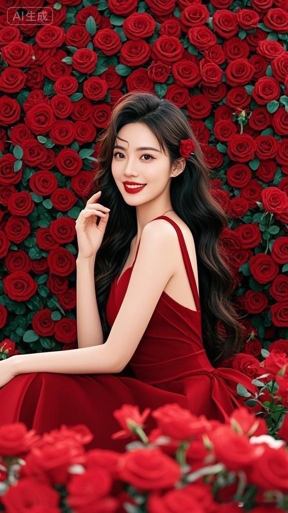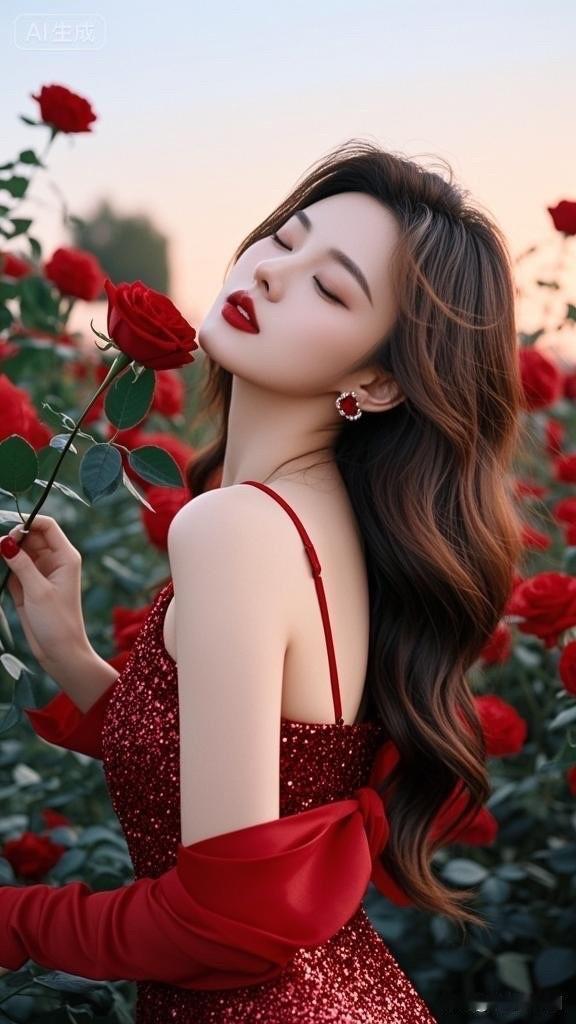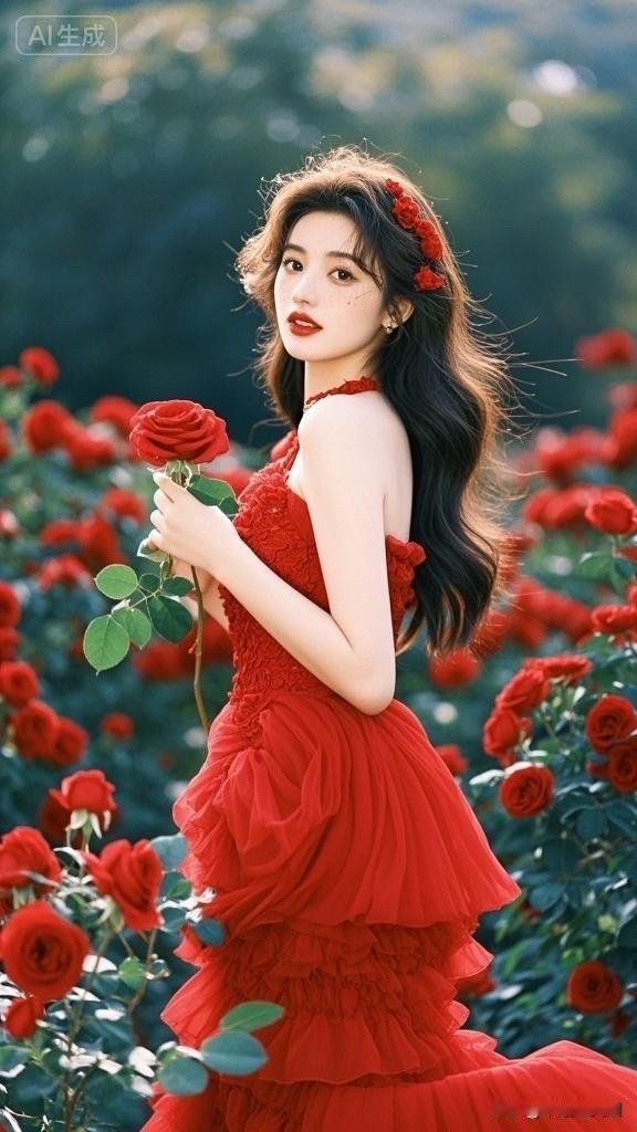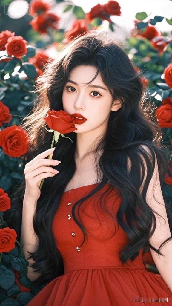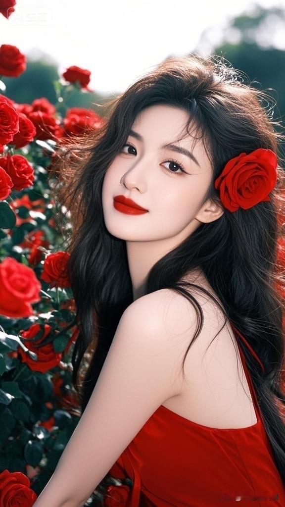 红玫瑰与黑发女郎的浪漫邂逅🌹💋