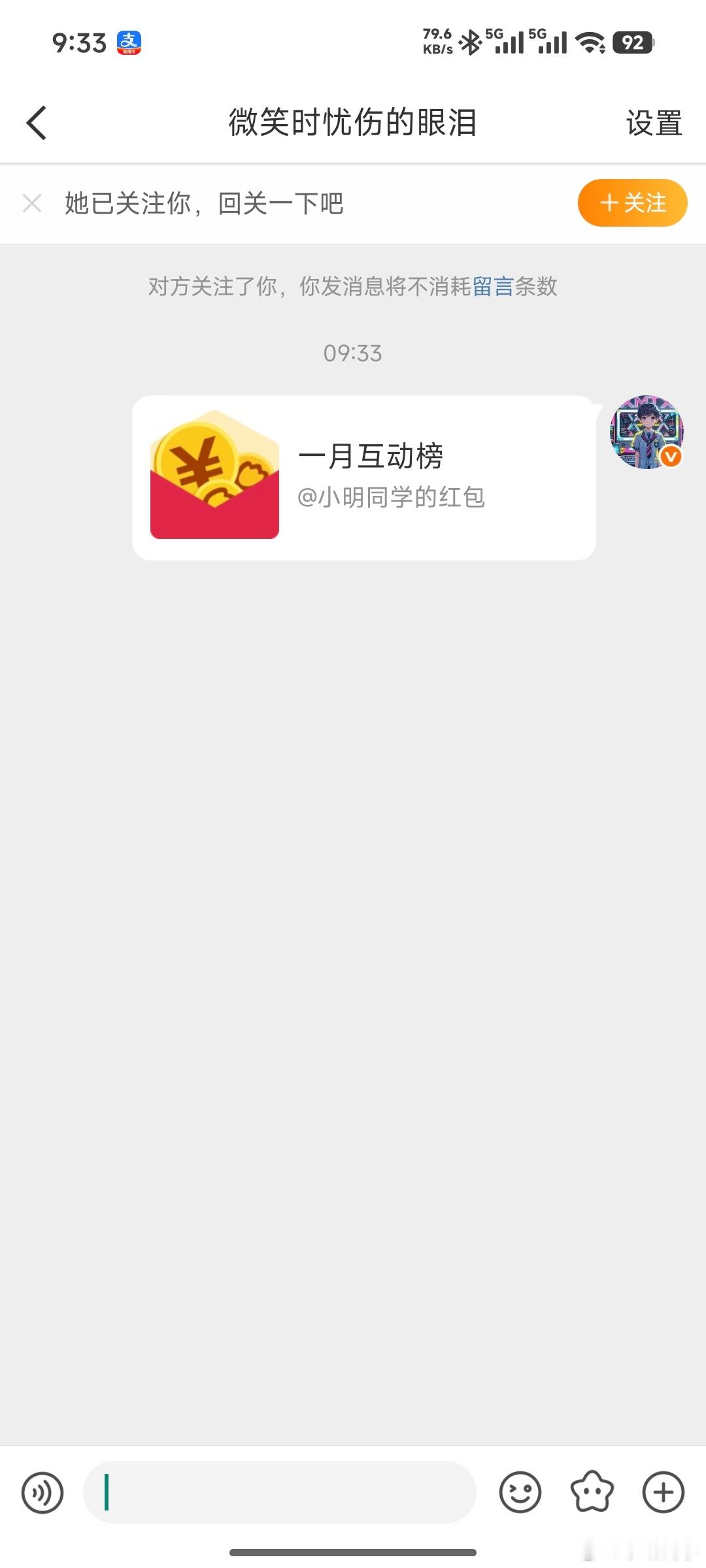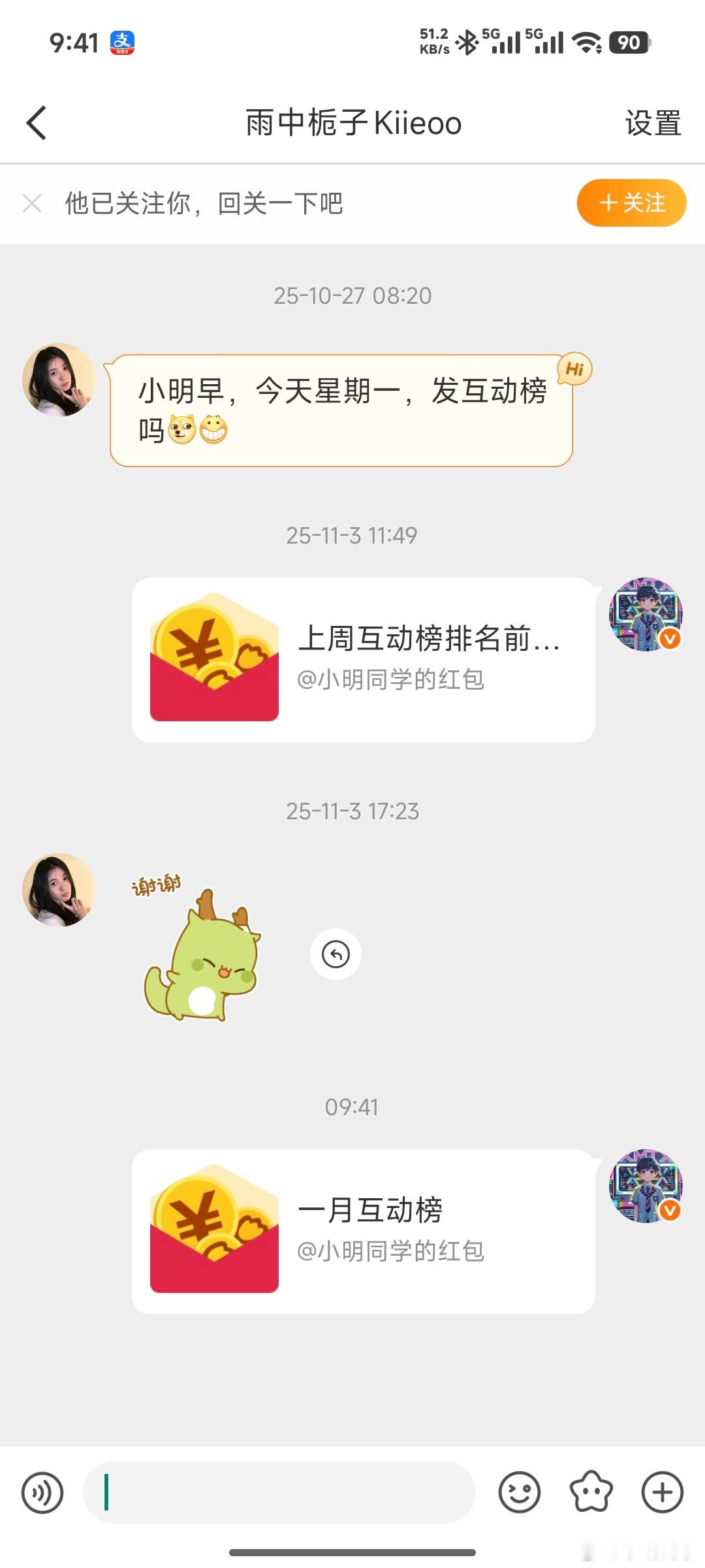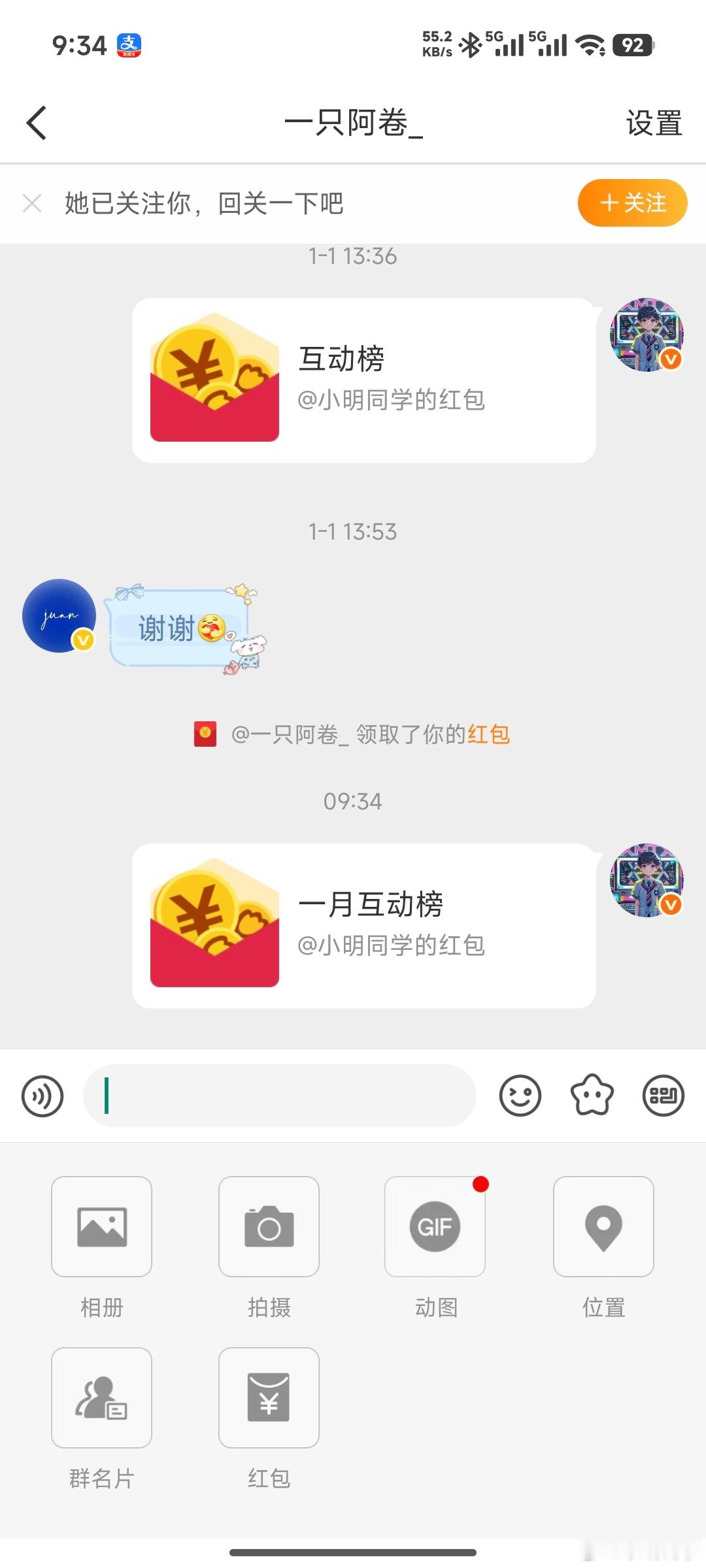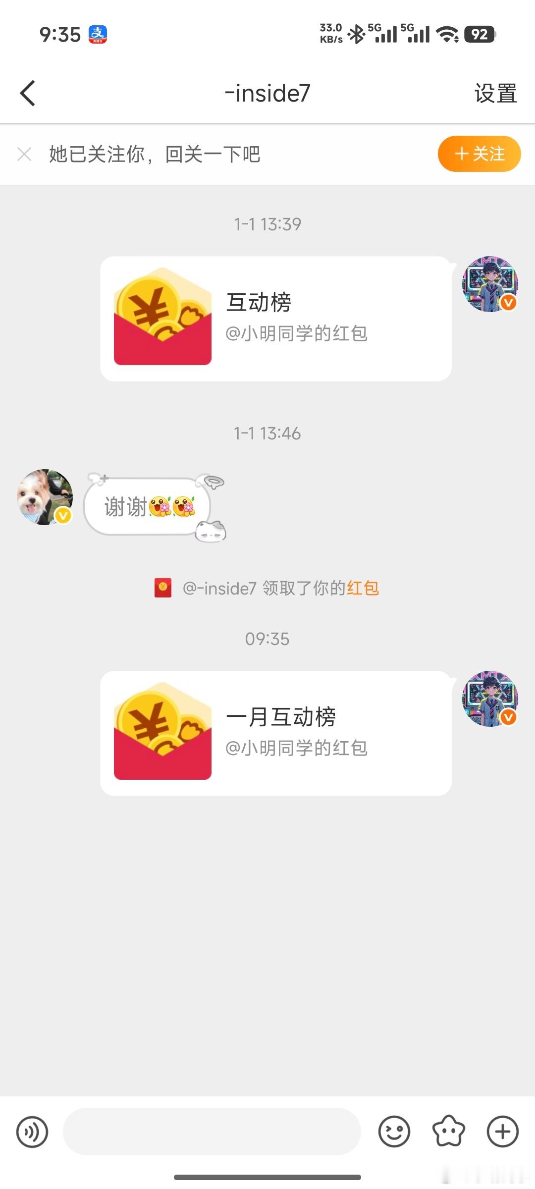 小明同学的红包一月份互动榜排名前二十的老铁,红包已私信,感谢支持。