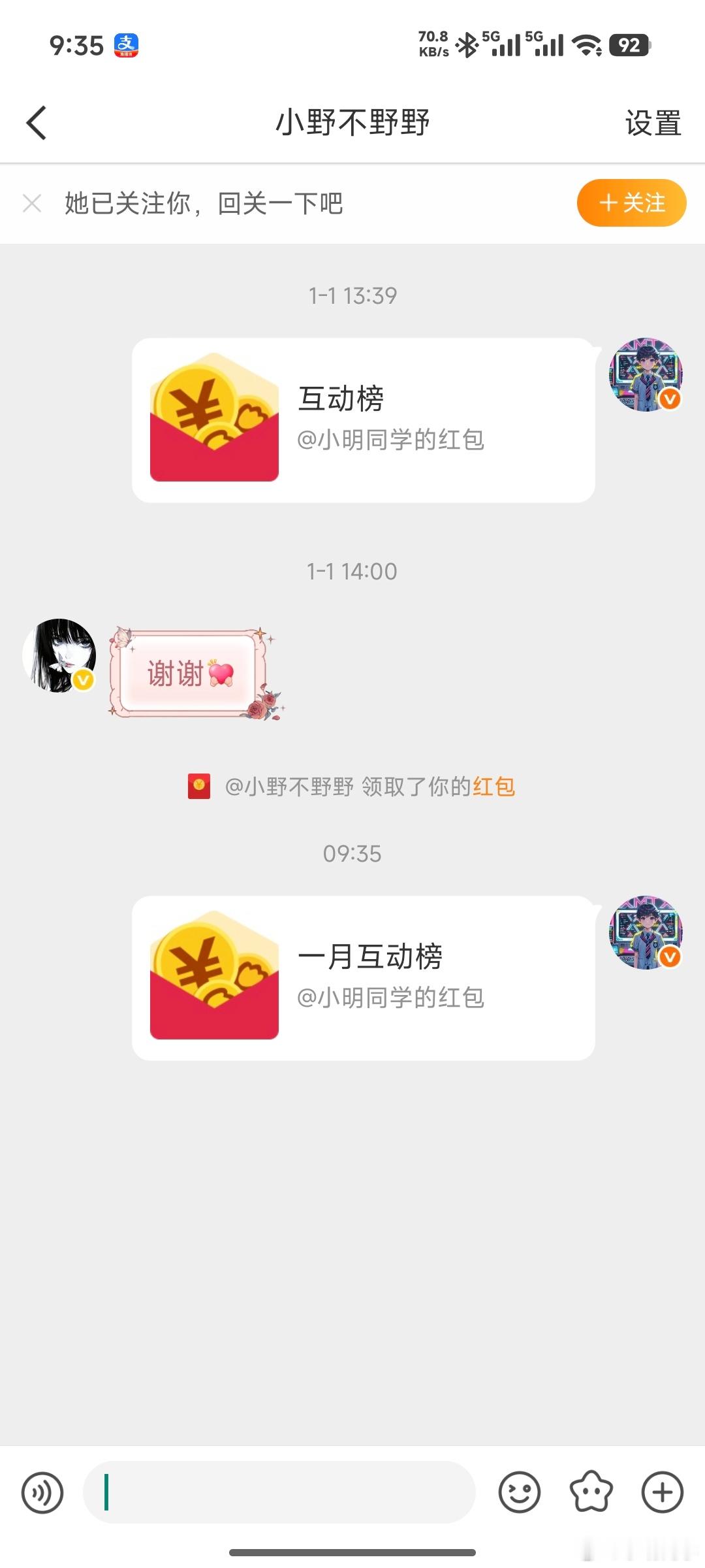 小明同学的红包 一月份互动榜排名前二十的老铁,红包已私信,感谢支持。