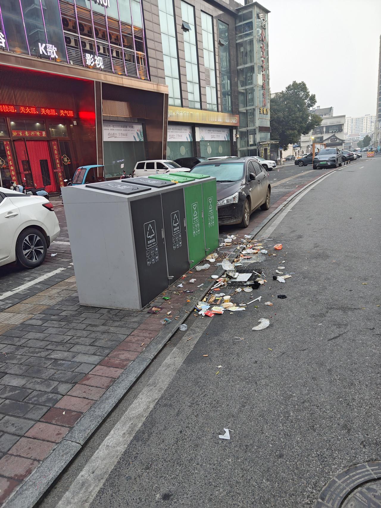 精致的垃圾箱似乎成了街道上夺目的珍珠,可是投掷不方便却终归硬伤,然后在素质普遍缺位的四线城市商业街上,部分垃圾首先实现了本体自由。