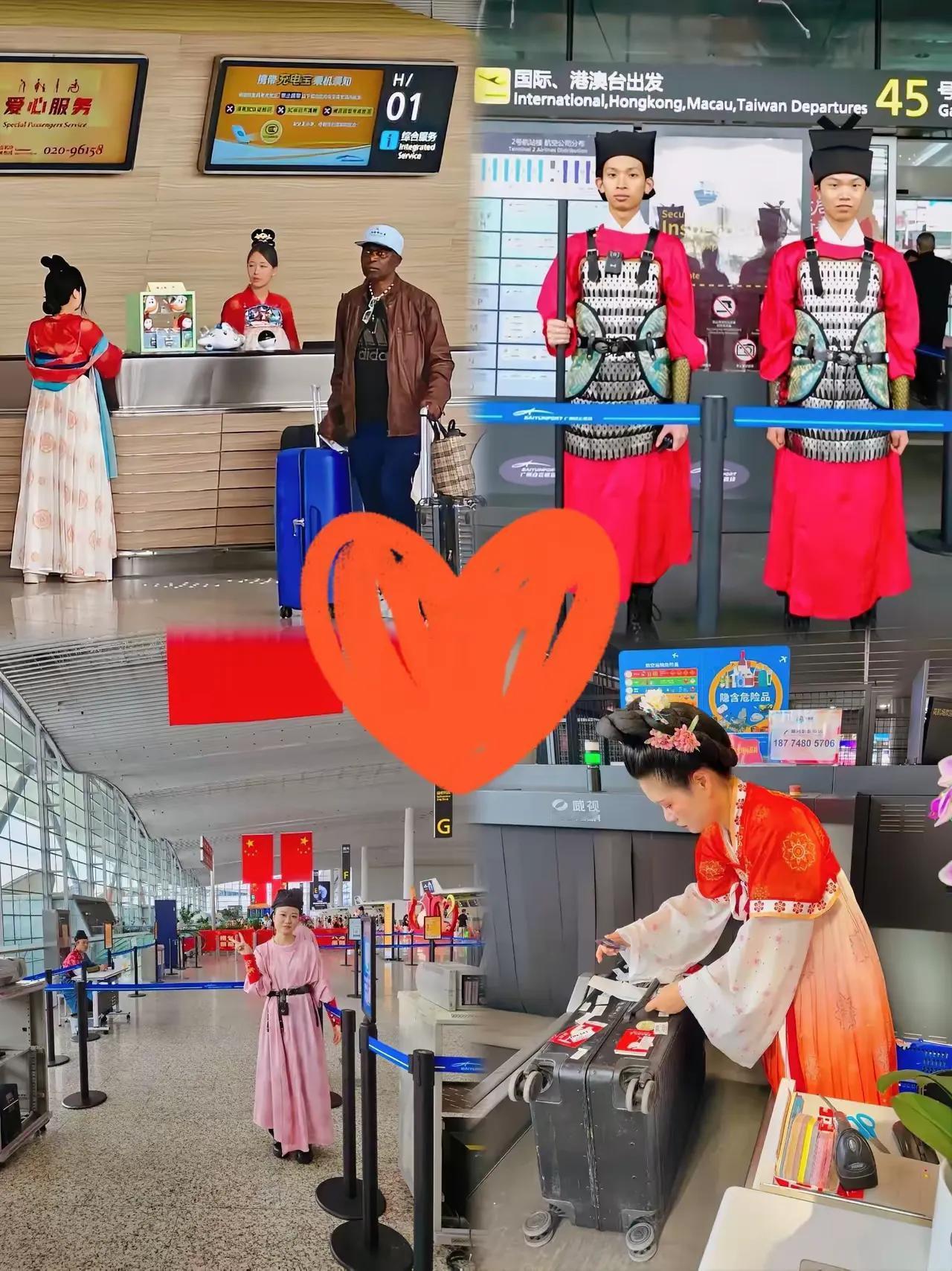 本来以为机场就是赶飞机的枯燥地方,结果刷到白云机场的视频直接看愣了,这波对待汉服的操作真的太有水平了! 1月31号起,二号航站楼里防爆检查和巡逻的工作人员全换上了宋制汉服,变身“宋服卫士”。女工作人员发间别着粉色牡丹簪花,还会行宋代叉手礼,跟旅客说“客官,这边请”,安检都变得有仪式感了。而且窄袖的汉服特利落,地勤蹲下来帮小朋友系鞋带,行李小哥推车奔走,完全没受影响。 这可不是第一次了,去年中秋他们就穿唐制汉服搞过巡游,还有《羽衣霓裳舞》表演呢 。之前总有人觉得汉服宽袍大袖只能拍照,不实用,白云机场直接用日常工作打破了这种偏见。赶路的旅客看到这些身着宋服的工作人员,疲惫都少了大半,纷纷拍照打卡,这既添了春运的暖意,又把传统文化润物细无声地传出去了。