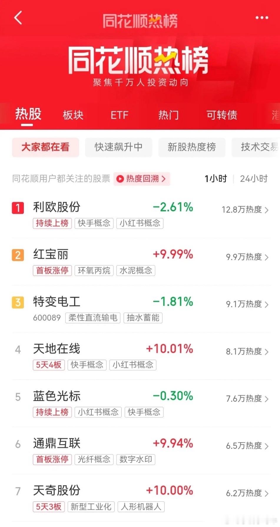 即将开盘,目前同花顺热榜最新排行前十名如下:
