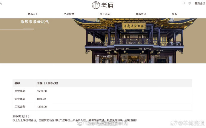 【#金饰克价跌回1484元#】 2月2日,现货黄金日内跌幅扩大至5%,报4605.53美元/盎司。国内品牌足金饰品价格跟跌下跌。老庙足金饰品标价跌至1509元/克。周生生足金饰品标价跌至1484元/克。#黄金白银继续暴跌#