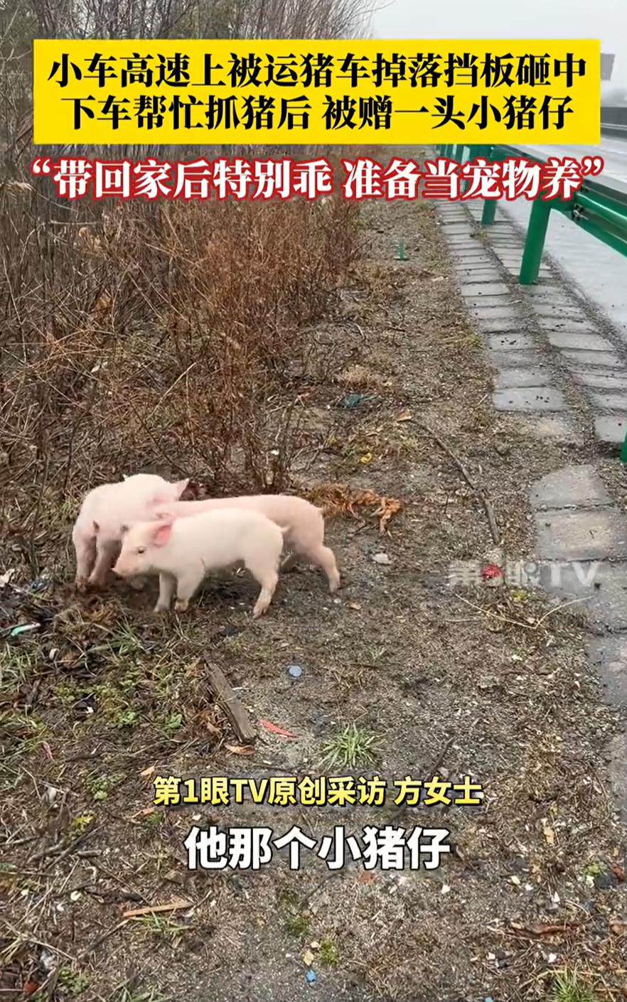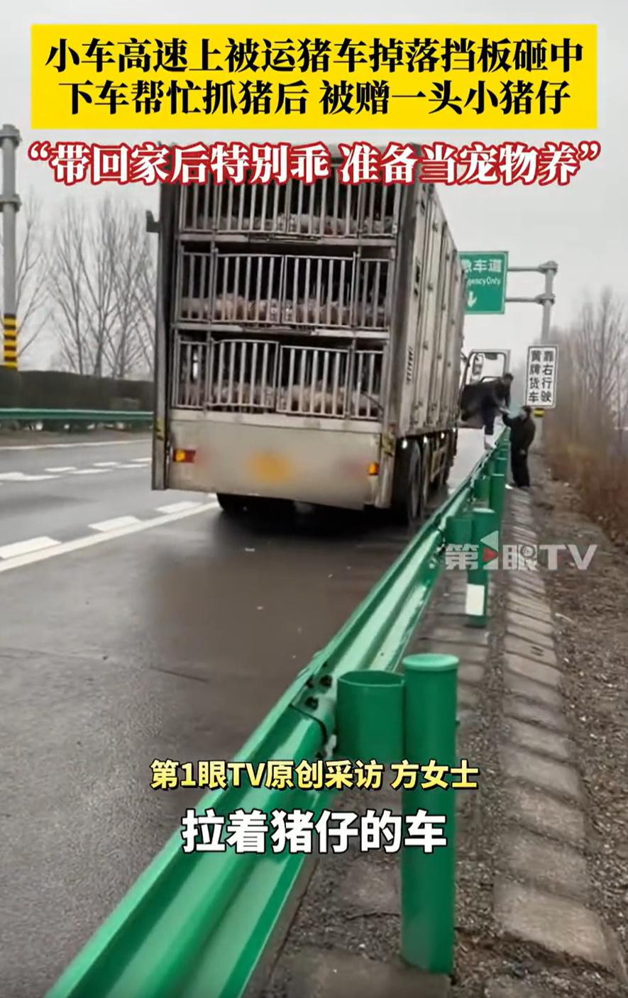 惊喜来的太大了!安徽阜阳,女子开车上高速,结果刚开没一会,就被一只从货车上掉下来的小猪给撞了,女子好心上前帮忙抓,结果却被告知这些猪都不能要了,并随手送给她一只,就这样上趟高速帮个忙,还收了一只宠物 方女士介绍,当时刚上高速没一会,就遇到前面一辆拉小猪的货车门板掉了下来,有的甚至砸到了她的车。好在车没啥事,人也没受伤,小猪倒是吓得四处乱跑 她第一反应也很朴素,下车帮忙吧,能抓一只是一只,总不能让小猪在高速上乱窜。于是就出现了一个挺少见的画面,高速路边,几个人追着小猪跑 等小猪被重新放回车上,车主却说了一句让人意外的话,这些猪不能要了。她一开始还以为是玩笑,后来才知道不是不想要,是不敢要。她想着既然这样,那自己干脆掏钱买一只,没想到对方摆摆手,直接送了她一只。就这么着,上了一趟高速,帮了个忙,车里多了一位新成员 很多人好奇,为啥掉地上的小猪就不能再进养殖场了 其实,这里面有个很多人不太了解的常识。正规的养殖场,尤其是大型的,对卫生防疫的要求非常严格。这些从车上掉下来、在高速路面跑过的小猪,很可能已经接触到了外界环境中的细菌或病毒。如果把它们重新混入车上其他猪群,甚至运进养殖场,一旦有潜在病菌,很容易引起群体感染。对于养殖户来说,为了一两只猪,冒整个猪群生病的风险,实在不划算。所以很多时候,遇到这种情况,掉落的猪宁可不要,也不能带回去 从这个角度看,车主把猪送人,其实也是一种止损。既不冒险带回去,也不让小猪白白浪费