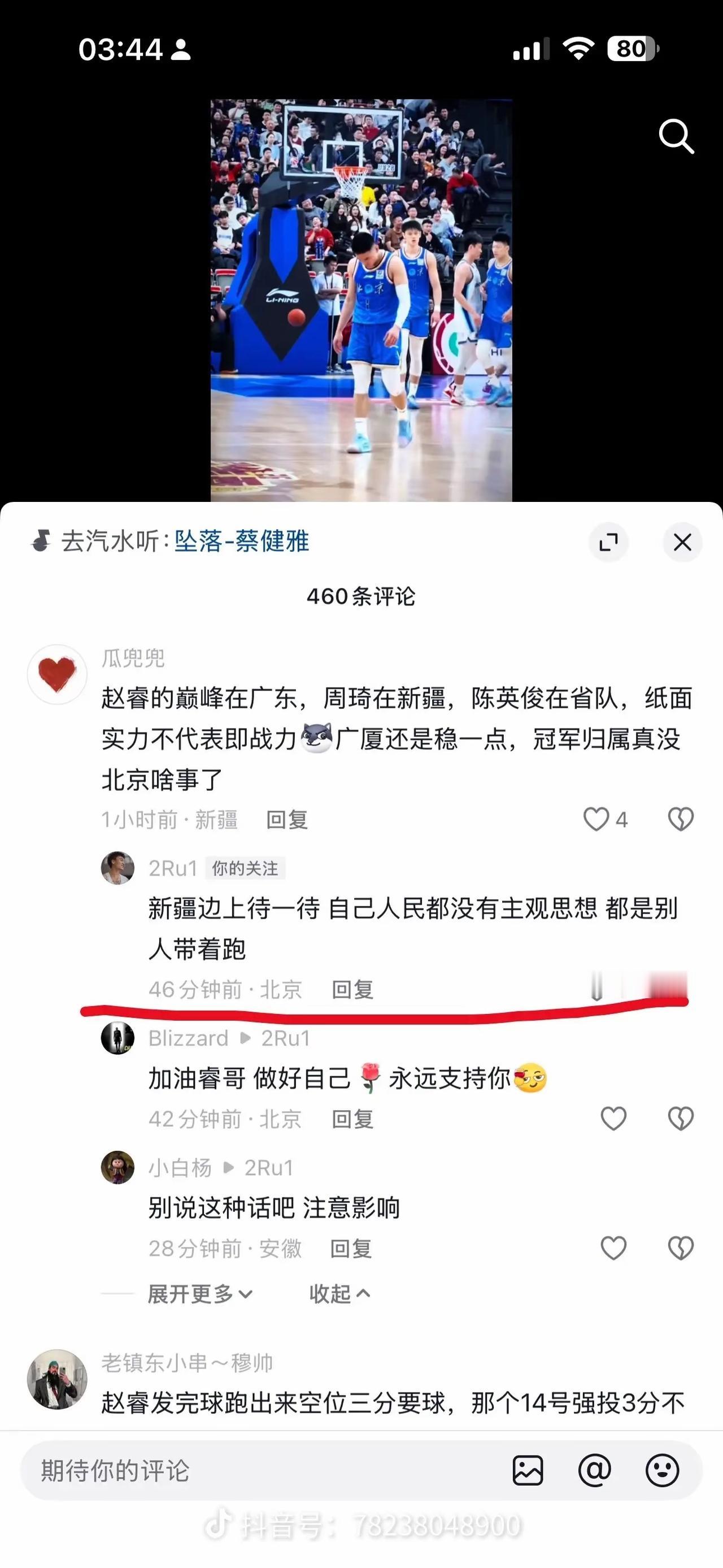 赵睿这次真的要祸从口出!赵睿虽然离开了新疆队,但是还是和新疆球迷较真的很。 新疆球迷说赵睿两罚不中是不是很生气,赵睿直接怒怼“回去打馕吧!”除了这句话还说了一句更难听的话。 其实新疆待赵睿也不薄了,两年顶薪养着都没打几场球,他想离开新疆队去北京也非常痛快的放人了,按道理讲赵睿不该对新疆队这么多怨气。
