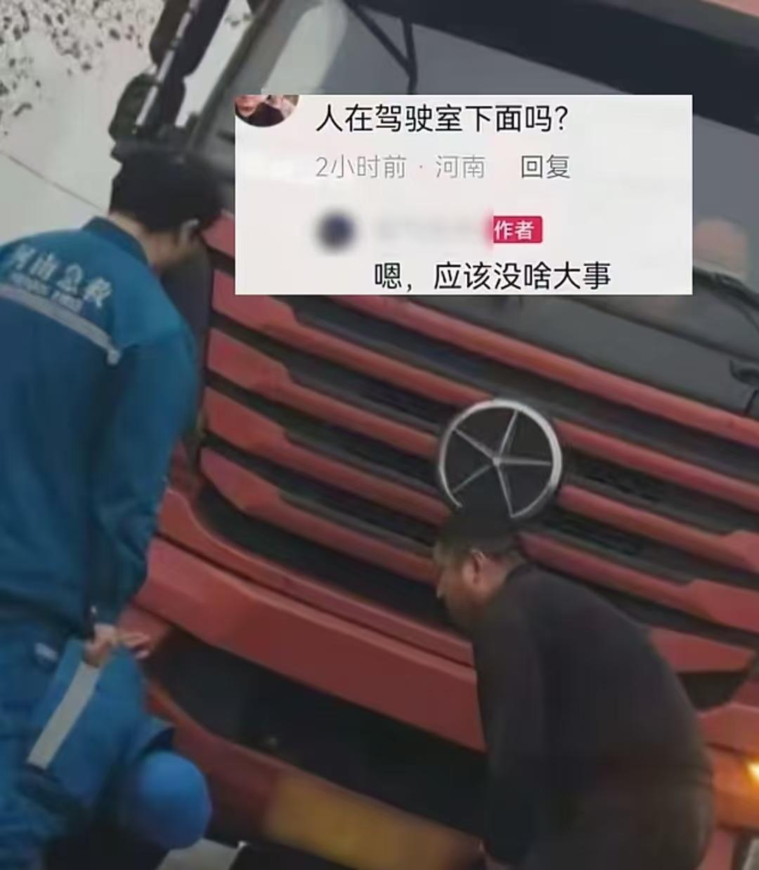 祈祷平安无事!电动车不慎被卷进半挂车底,司机崩溃抱头疯狂跪地趴车底找电动车主,四处寻人施救!目击者:“人在车头下面,应该是没 事。” 1月31日,河南一位半挂车司机路过一个路口时突然感觉到车辆异动,他的心中升起一种不祥的预感:“不会是撞人了吧!” 顾不上是否遵守交通规则,他急忙将车停好,下车查看。看到一辆电动车倒在自己车轮下的时候,他的脑子嗡的一声,感觉天都塌了! 但是电动车旁并没有看到电动车主,大车司机疯狂的在自己车周围寻找电动车主的身影,但是并没有找到。于是他跪在地上,查看车底。 他崩溃的大喊,希望有人来帮帮他! 有目击者看到这一幕,就拿出手机记录了下来。看大车司机的反应,他一定是一个非常善良的人,并且没有出过什么事故,否则就不会如此慌乱的寻找是否有人受伤。他的内心一定是崩溃了! 最后在车头的下方找到了电动车主,交警到来后,在群众的帮助下将吓坏的电动车主救了出来。据目击者称:在车辆并没有移动的情况下,徒手将电动车主拉了出来,自始至终也没有急救车来到现场,人应该是没什么事。 借此,我想提醒大家:大车有一定的盲区,出行在外,一定要和大车保持距离!最后,希望电动车主平安无事!河南 车祸