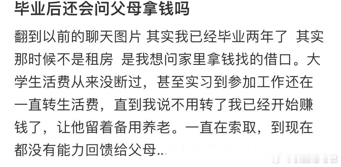 毕业后还会问父母拿钱吗