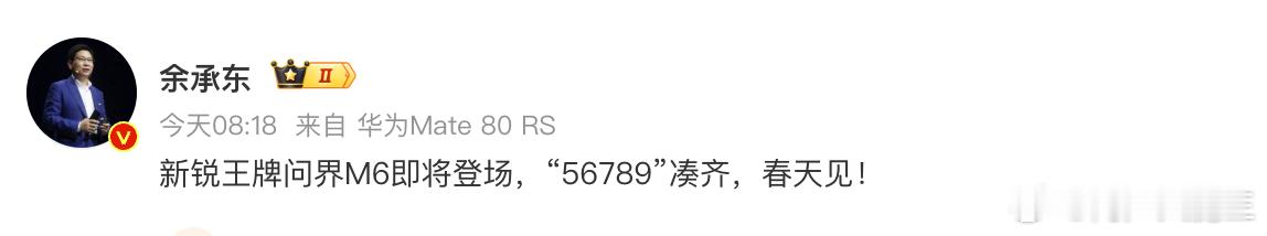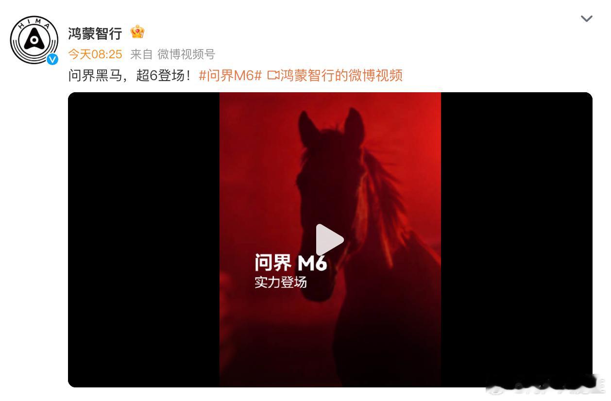 一匹黑马即将入市~!余承东直接官宣问界 M6 春季发布!鸿蒙智行这波黑马预热太会了,终于把 25-30 万级的空白填上了,问界 56789 产品矩阵直接凑齐,这布局真的稳 !一起期待一下这匹黑马的表现如何吧~问界M6