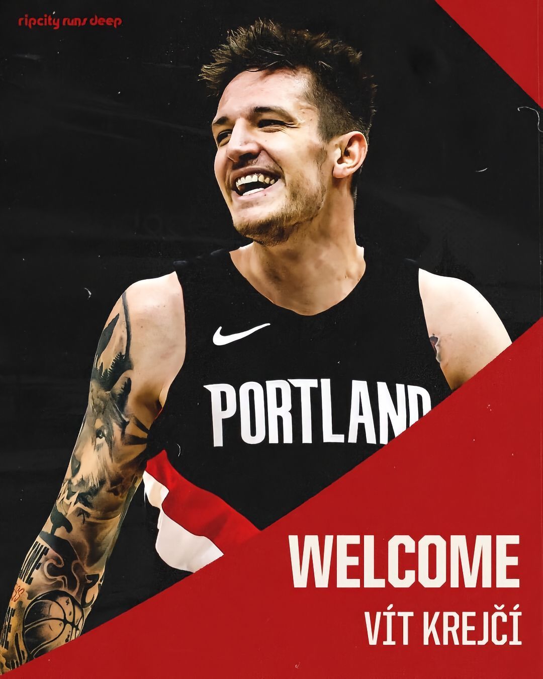 开拓者老鹰交易 开拓者队总经理Joe Cronin今天宣布,亚特兰大老鹰队将后卫维特·克雷伊奇交易至波特兰开拓者队,换来杜普·里斯和两个未来的次轮选秀权。 维特克雷伊奇来自捷克共和国,参加他的第五个NBA赛季,本赛季在亚特兰大的46场比赛(八次首发)中,每场比赛平均获得9.0分(46.4%% FG,42.3%% 3PT),2.1个篮板和1.5次助攻。 本赛季平均每场维特克雷伊奇的三分球率为42.3%%,目前在NBA中排名前20,而在过去两个赛季中,他每次从弧线外的投篮率都超过40%%。 Krejci将为开拓者队穿27号球衣,和瀚森成为队友!克雷伊奇被交易至开拓者