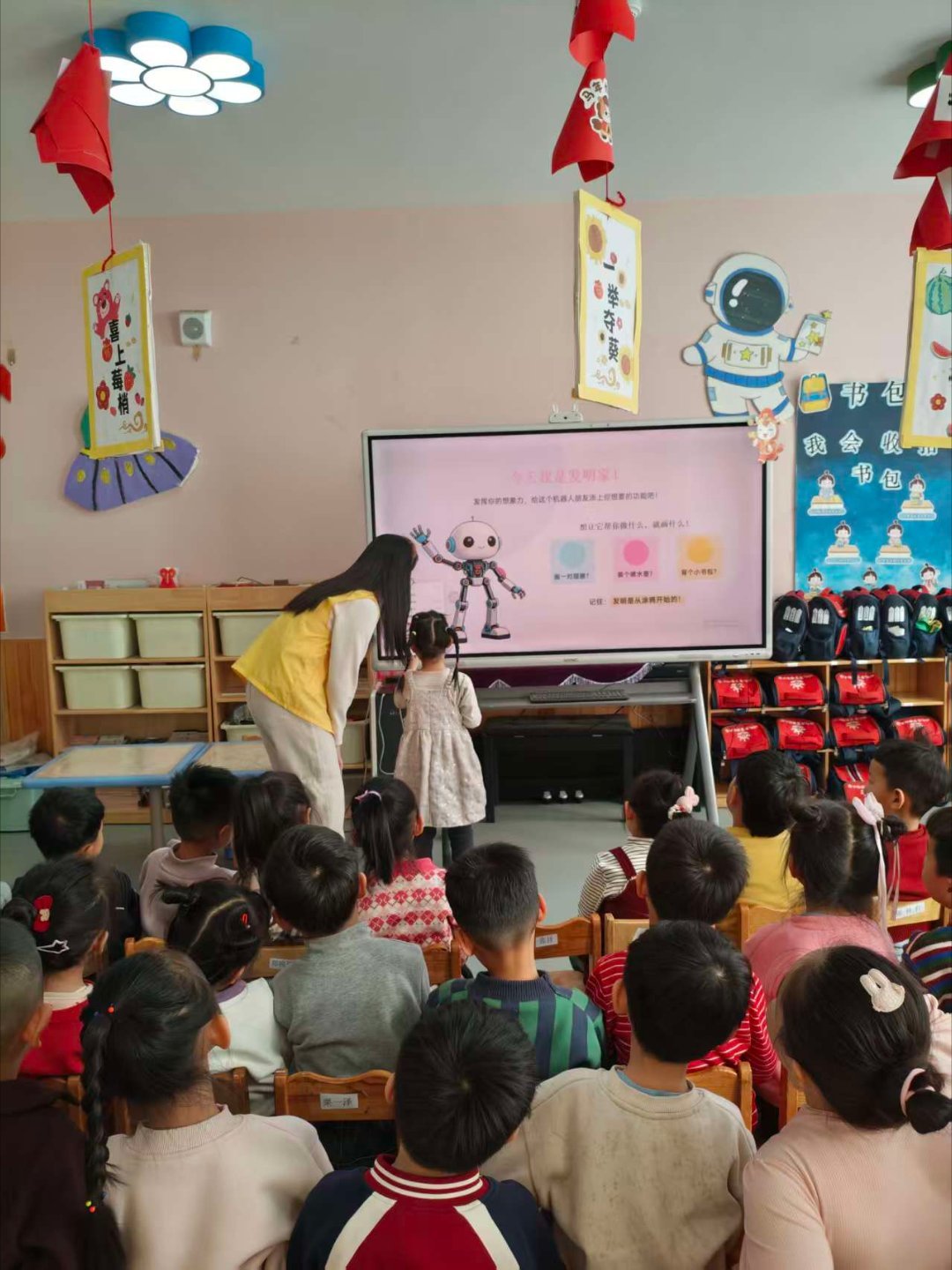 秦岭笑谈【科创润童心,筑梦向未来】曲阜师范大学大学生寒假社会实践科创逐梦为让孩子们在沉浸式体验中解锁科技奥秘,点燃对科学世界的好奇心与探索欲,2026年1月20日,曲阜师范大学“智趣润童心,科普育英才”实践队队员走进怀仁四小附属幼儿园,开展“科创润童心,筑梦向未来”科普教学活动。实践队员结合幼儿具象化的认知特点,以“机器人的诞生与进化”为主题,用生动的动画短片和趣味互动,为孩子们讲述了从最初的机械装置到如今智能机器人的发展历程。队员们还通过情景模拟,带孩子们穿越回古代烽火传信、驿站快马的年代,对比现代的5G通信与智能穿戴设备,让孩子们直观感受到通讯方式演变对生活的巨大改变。在“小小机器人设计师”的创作环节中,孩子们拿起彩笔、卡纸和黏土,发挥天马行空的想象,有的设计了会讲故事的陪伴机器人,有的画出能帮忙整理玩具的清洁机器人,还有的打造了可以飞向太空的探索机器人。在动手实践中,孩子们不仅明白了齿轮、传感器等基础科学原理,更在团队协作与自主创作中,锻炼了逻辑思维与动手能力,体会到“发明创造”的乐趣。此次活动将前沿科普转化为幼儿能懂、能玩、能创的生动课堂,不仅为孩子们埋下了科学创新的种子,更通过“玩中学、学中创”的模式,为学前阶段的科创启蒙教育探索出可复制的实践路径,让科学的种子在童心沃土中生根发芽,助力孩子们在未来成长为敢想敢创的科创新星。