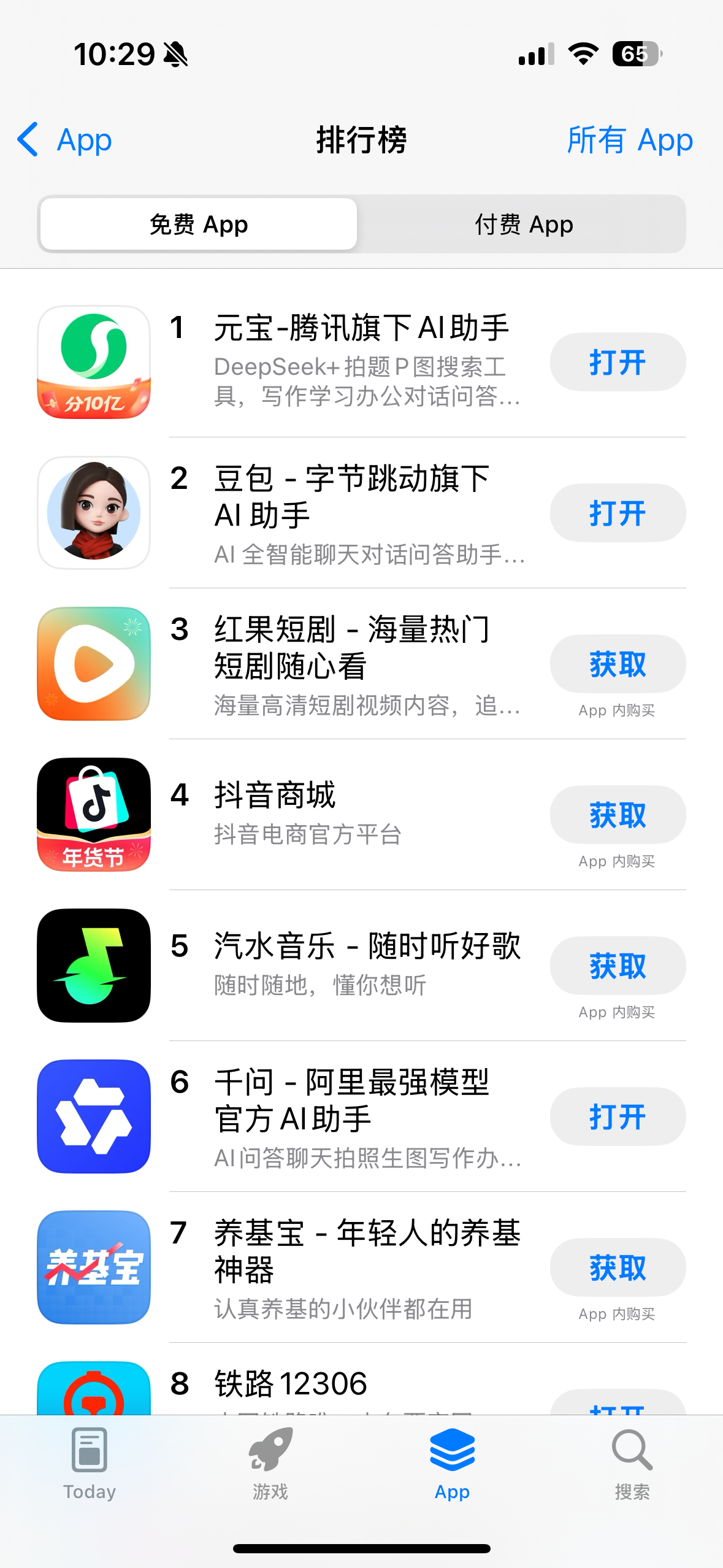 腾讯元宝App直接干到了免费app榜第一名,最近各个群里都是它的链接。这个春节,Ai竞争有点激烈啊?