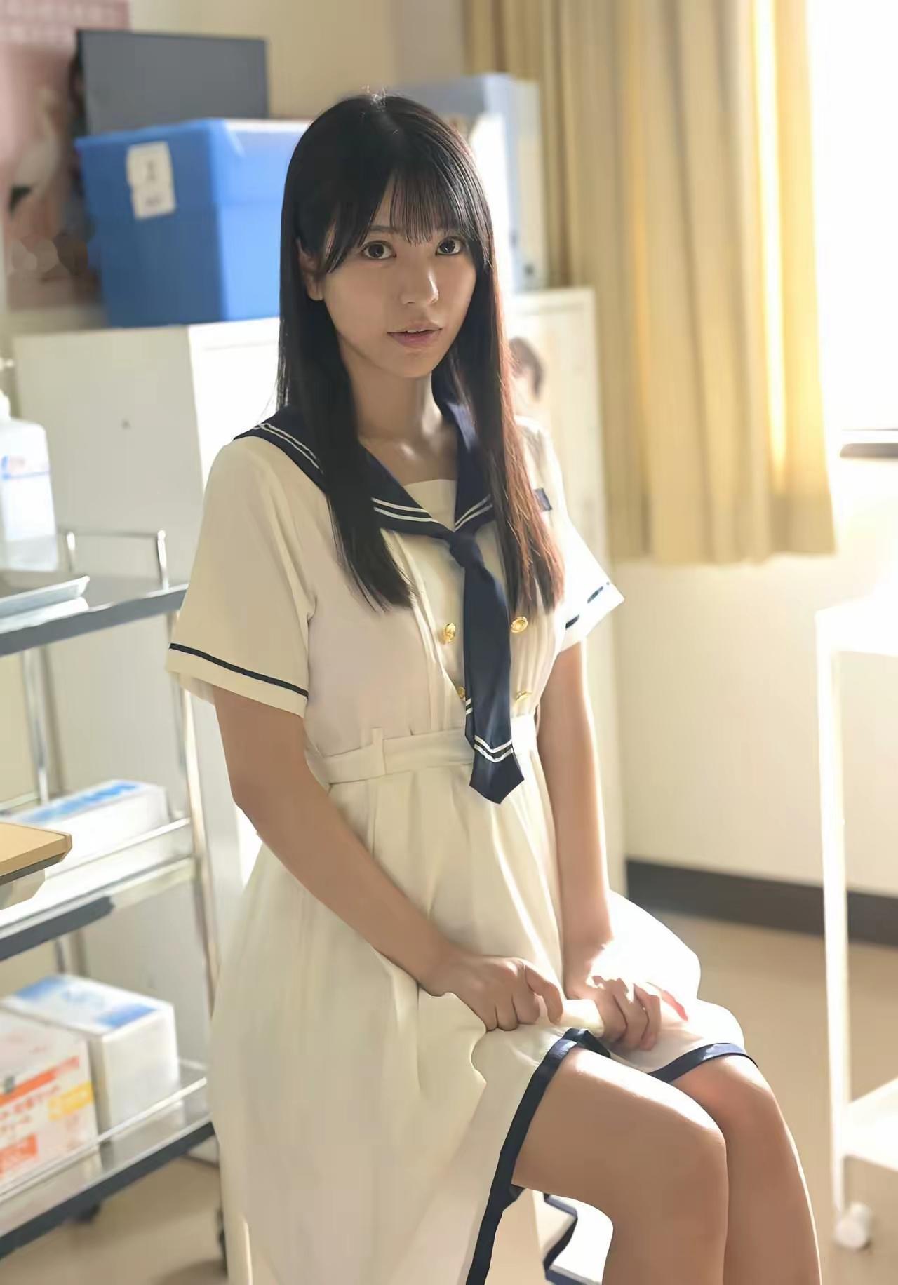 暖黄的阳光漫过房间,水手服裙摆轻轻垂落,少女安静坐着,眼里像盛着细碎的星光,是属于青春的清甜与温柔。