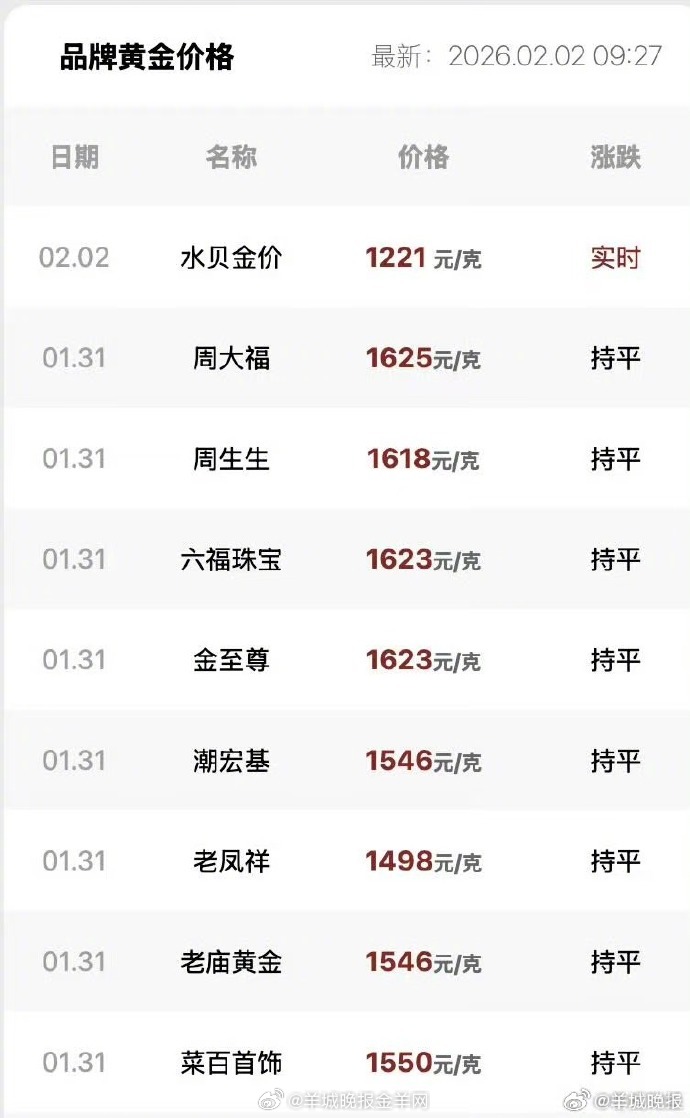 【#水贝黄金周末2日克跌130元#】 #水贝黄金日均克跌65元# 2月2日,现货白银周一盘初跌4.5%;现货黄金跌1.4%。随后跌幅持续扩大,现货白银日内跌幅一度扩大至10%,现货黄金日内下跌3.33%。#黄金白银又跌麻了# 话题登上热搜,引发关注热议。注意到,深圳水贝黄金交易市场实时金价显示,截至2月2日上午9时27分,水贝金价为1221元/克,1月30日也就是上周五,金价为1351元/克,短短周末2日克跌130元。#黄金有望涨至6000美元#