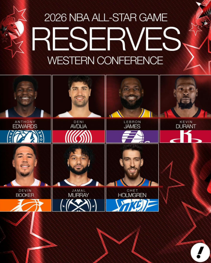 全明星替补名单出炉: 詹杜入选,快船竟无一人! 西部:华子、穆雷、切特、杜兰特、布克、阿夫迪亚、詹姆斯; 东部: 米切尔、杰伦约翰逊、唐斯、西亚卡姆、鲍威尔、巴恩斯、杰伦杜伦; 穆雷终获认可,阿夫迪亚、切特也首次入选;对比下詹姆斯和小卡数据,甚至里夫斯的,他有资格吗?是不是该让出来? 东道主快船太没面了,哈哈。鲍尔默:你们让湖人举办去吧! 东部星光太暗淡了,杜伦、杰伦约翰逊首次入选,可鲍威尔什么鬼?比得过莺歌?