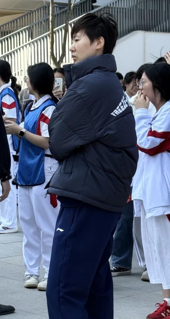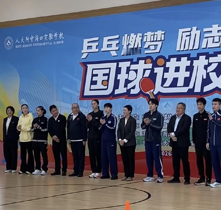 亚洲杯备战期间来到人大附中海口实验学校参加国球进校园活动的王曼昱和队友王楚钦、徐奕、陈熠、牛冠凯、陈俊峰等人。 王曼昱一开始在户外还是乖乖穿着羽绒服的。看来海口的早上风挺大。 活动期间,国乒队员与学校学生老师互动进行乒乓表演。