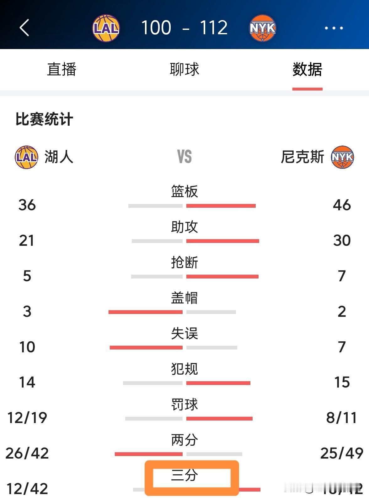湖人超级球星詹姆斯怒批球队的三分表现!在今天湖人客场以100:112不敌尼克斯的赛后采访中,詹姆斯聊到了球队的失利,他这样说道:“本场比赛失利的关键在于球队糟糕的三分表现,以及我们让对手得到了大量的额外进攻机会。” 本场比赛湖人在三分线外的表现确实非常的糟糕,湖人的三分球命中数足足比尼克斯少了6个,因此我非常理解詹姆斯对球队在三分投射方面的不满。