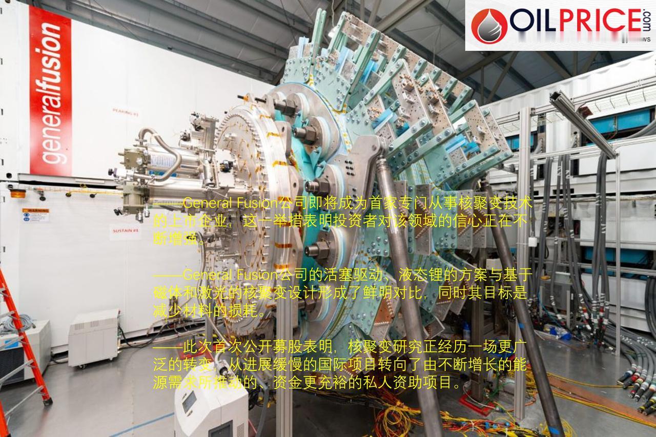全球即将迎来首家公开上市的“纯核聚变”公司,这传递什么信息? 全球即将迎来首家公开上市的“纯核聚变”公司加拿大通用聚变(General Fusion),该公司决心以一种创新模式实现核聚变能源的输出,该模式既不使用磁铁也不使用激光——这是目前主流核聚变实验中最常见的两种组件。相反,专注于核聚变技术的初创企业通用聚变所采用的模式是利用机械活塞将等离子体封闭在液态锂壳内。有趣的是,据Interesting Engineering网站报道,该技术被描述为“一种实用的机械式核聚变解决方案,强调其能够避开其他设计中存在的材料退化问题”。 但通用聚变公司最具有开创性的地方并非其技术——而是它即将成为一家专注于核聚变的上市企业这一独特之处。这得益于通用聚变公司与斯普林瓦利收购公司之间达成的“最终业务合并协议”,这显示出对核聚变商业潜力的坚定信心。投资者们通过将所有资金投入这一项目,表明了在核聚变领域进行重大布局的决心。 即将进行的通用聚变公司的首次公开募股(IPO)凸显出过去几年核聚变研究领域发生了多么巨大的变化。几十年来,核聚变一直完全属于大型政府联盟的专属领域,只有这些机构有能力提供进行如此大规模且成本高昂的实验所需的大量资金和资源。如今,随着对核聚变的研究竞赛日益私有化,市场上涌现出了越来越多规模较小、更具灵活性的初创企业,这使得该领域变得更加多样化和灵活。而且,突破性成果也已接踵而至。 就在十年前,核聚变还被视为一个遥不可及的幻想,常被吹捧为一种难以实现且充满未来感的“万灵药式”的解决方案,能够提供无限的清洁能源。这个梦想如此宏大而理想化,以至于只有财力雄厚的政府才有能力在此地对类似太阳的能量生成系统进行实验性研究。 多年来,国际热核聚变实验反应堆(ITER)一直处于领先地位,并保持着其作为全球最大聚变实验设施的殊荣——甚至可能称得上是“世界上最宏大的科学实验”。这座巨大的设施位于法国南部,由七个成员国共同资助和运营:中国、欧盟(EU)、印度、日本、俄罗斯、韩国和美国。但由于其规模庞大以及背后的复杂管理机制,ITER 要实现首次等离子体状态仍需数年时间,而且预计在开工后还需要超过十年的时间以及约 220 亿美元的资金投入。 ITER 项目仍然具有重要意义,但它已不再是该研究领域唯一的耀眼明星。其他众多项目正朝着实现相同目标的方向稳步推进,而且所需资金远少于 ITER 项目。ITER 的支持者表示,这标志着该项目取得了成功,并且其成就和影响力激发了大量私人投资者涌入该领域并努力使 ITER 失落于历史。 大量的此类私人关注和资金都来自科技行业。随着人工智能热潮的兴起,数据中心的运行需要越来越多的能源,这使得科技行业感受到了巨大的且日益加剧的紧迫感。包括比尔·盖茨和OpenA公司的萨姆·奥尔特曼在内的一些科技巨头,都是核聚变研究的坚定支持者,他们认为这是解决人工智能日益严重的能源问题的良策。 盖茨在去年 10 月份的一篇文章中写道:“如果你懂得如何建造核聚变发电站,那么在任何地方、任何时候都能获得源源不断的能源。这将是一个多么重大的突破啊,其重要性难以言表。” “如今,电力的可用性和价格是几乎所有经济领域的一个巨大限制因素。取消这些限制可能会带来与工业革命前蒸汽机的发明同样重大的变革。”