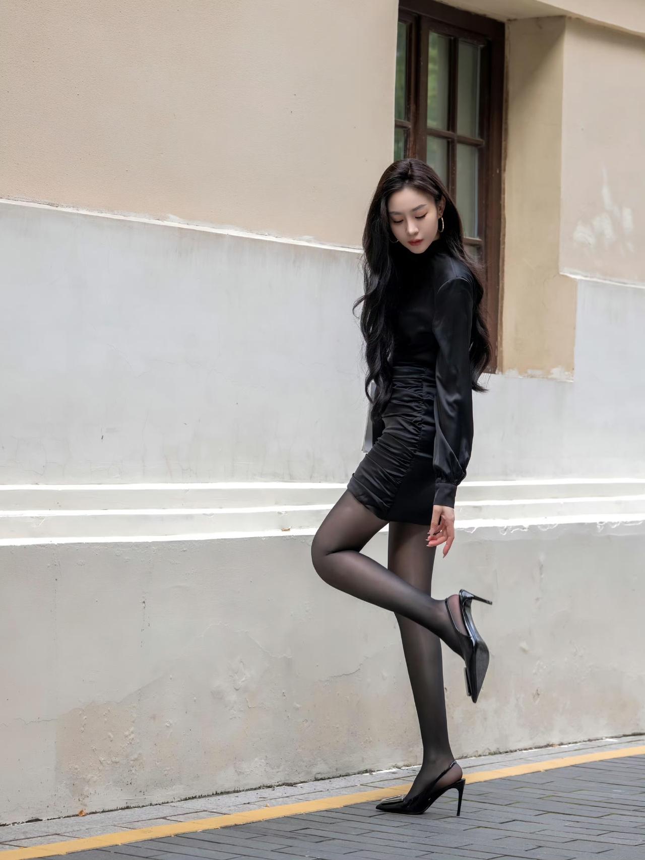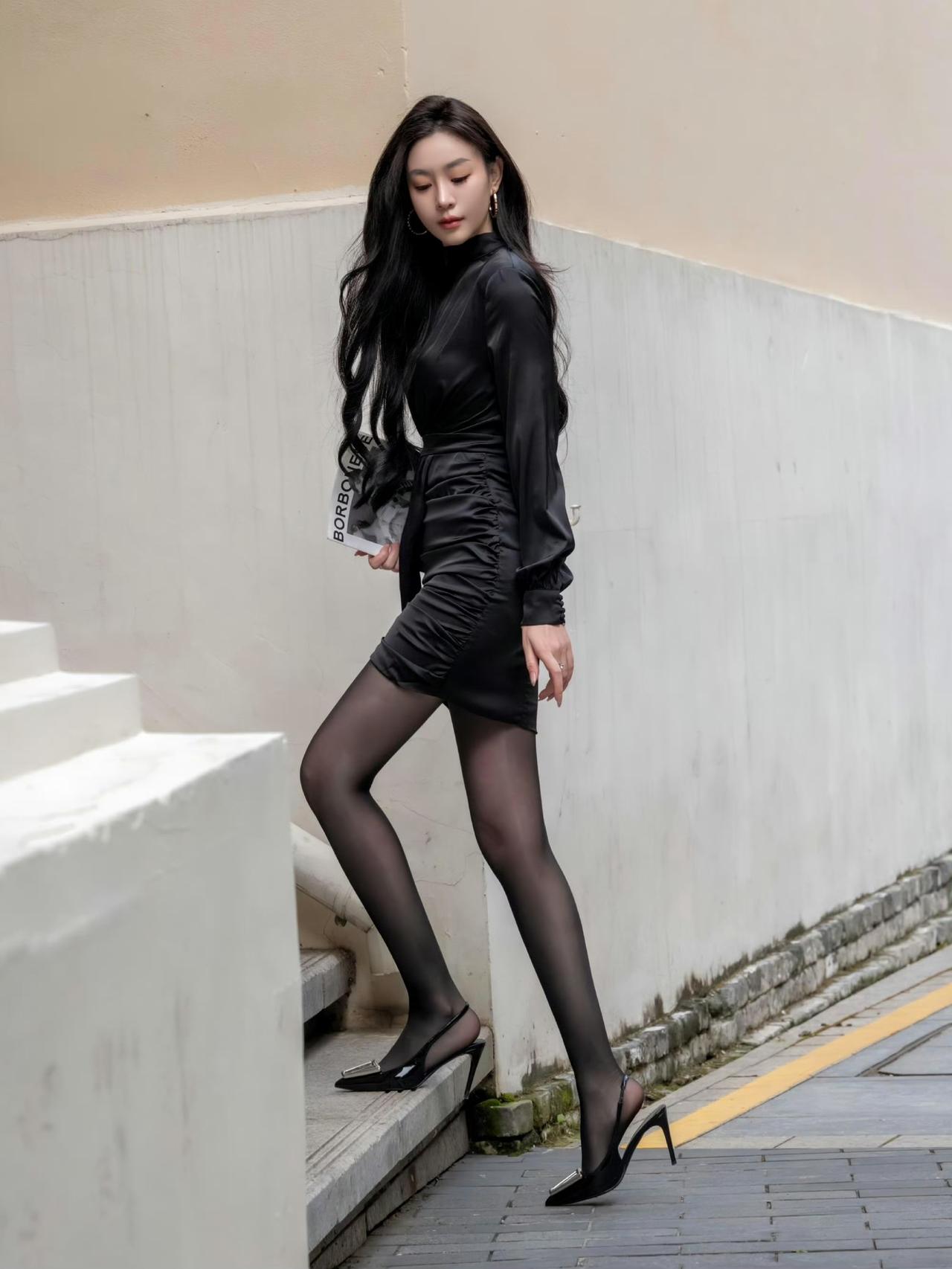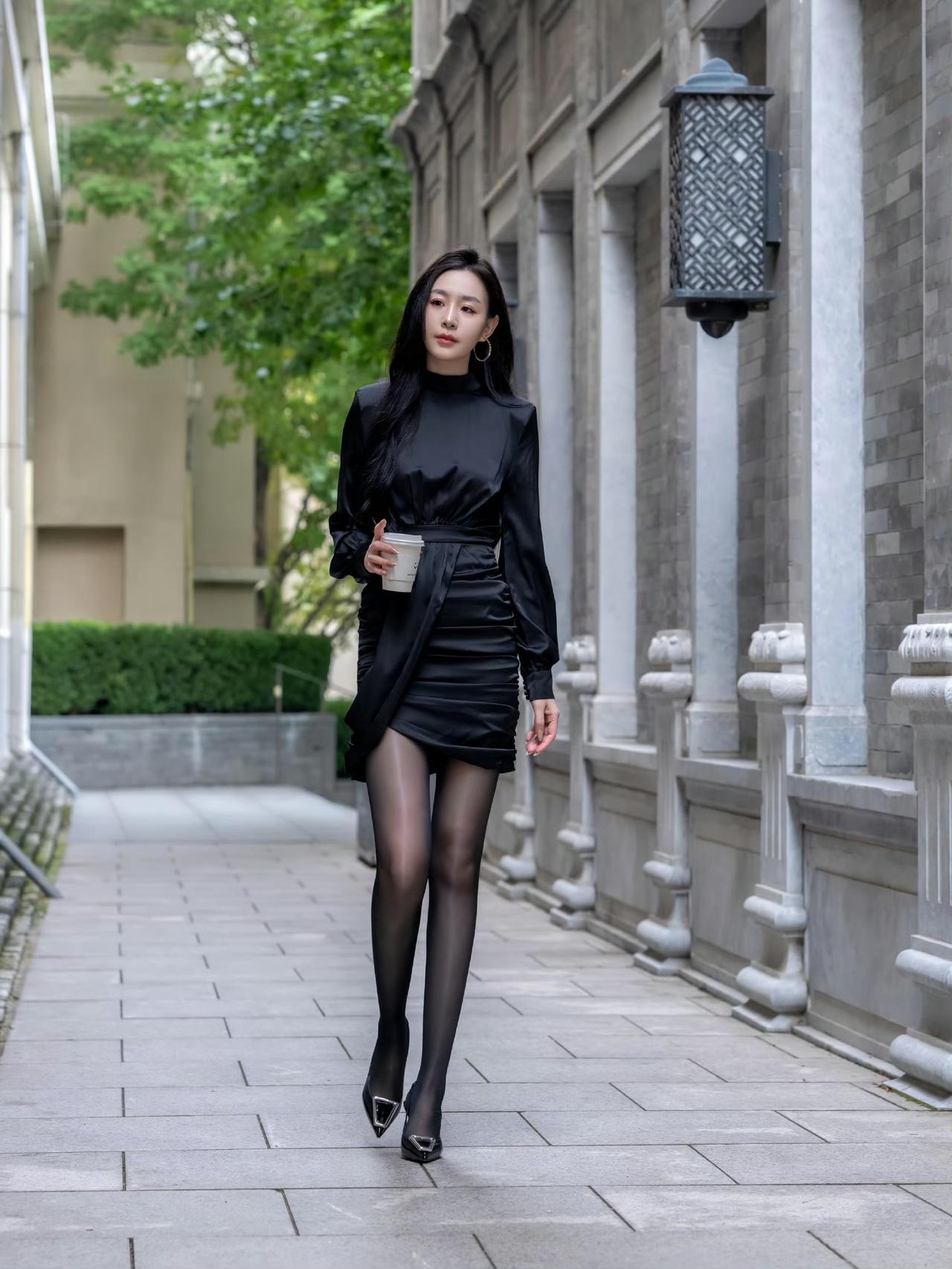 这套黑色缎面连衣裙太有“轻熟氛围感”了!缎面材质自带高级光泽感,收腰设计刚好凸显身材曲线,尖头鞋又添了精致利落的气质,日常出街或轻约会都很出彩~黑色系穿搭 黑色缎面连衣裙 高级感黑色裙子 高级感缎面裙子